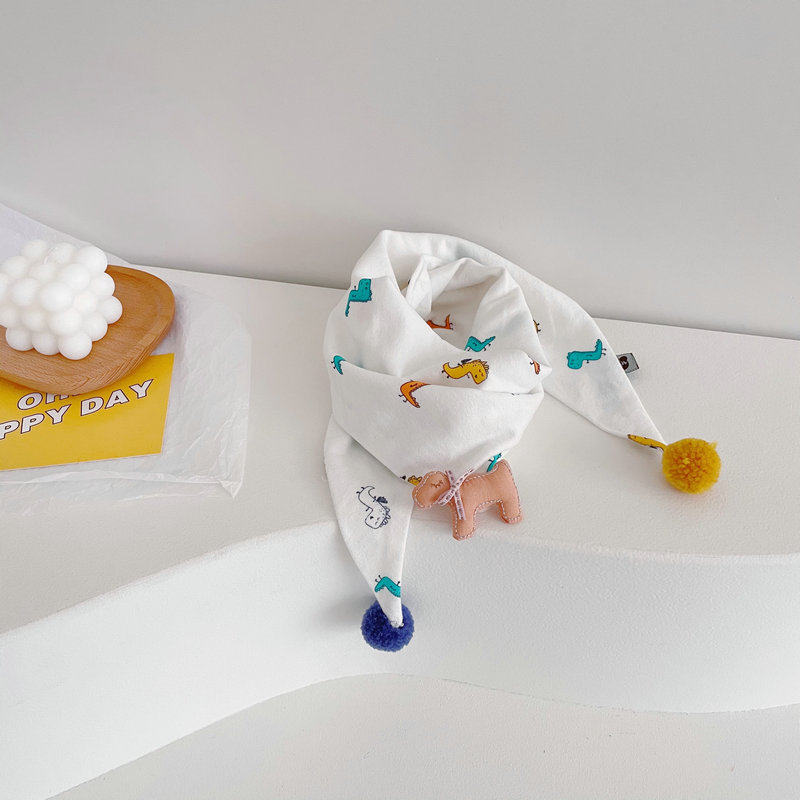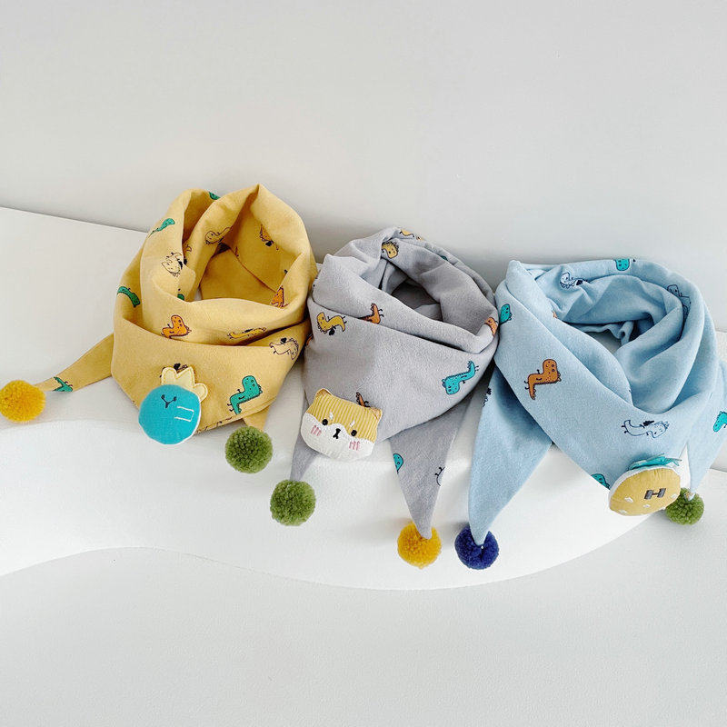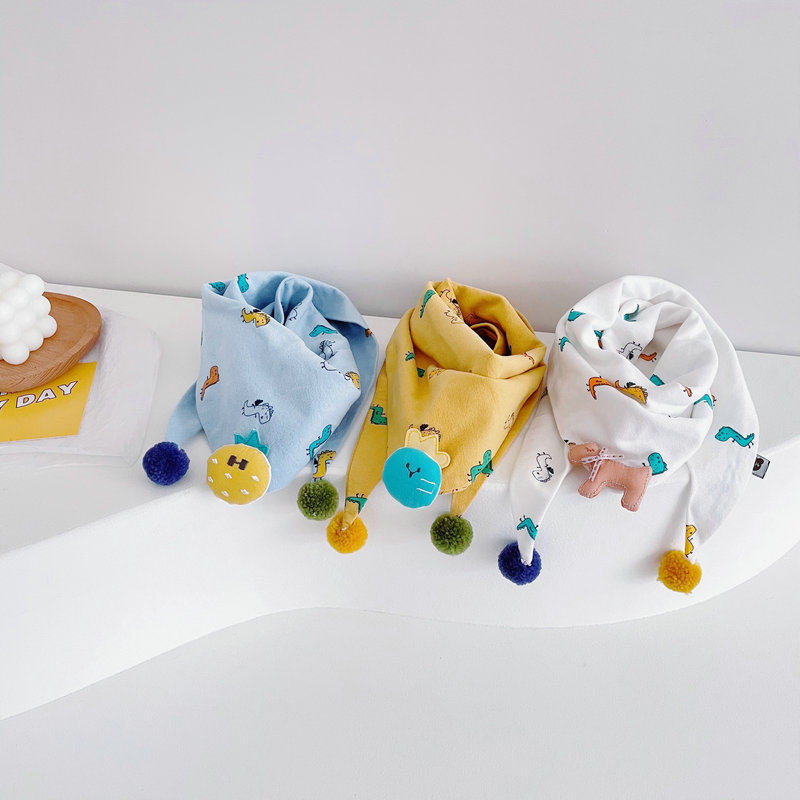 Ins cute cartoon dinosaur children's cotton linen scarf baby double fight fur ball spring and autumn thin baby scarf Korean version