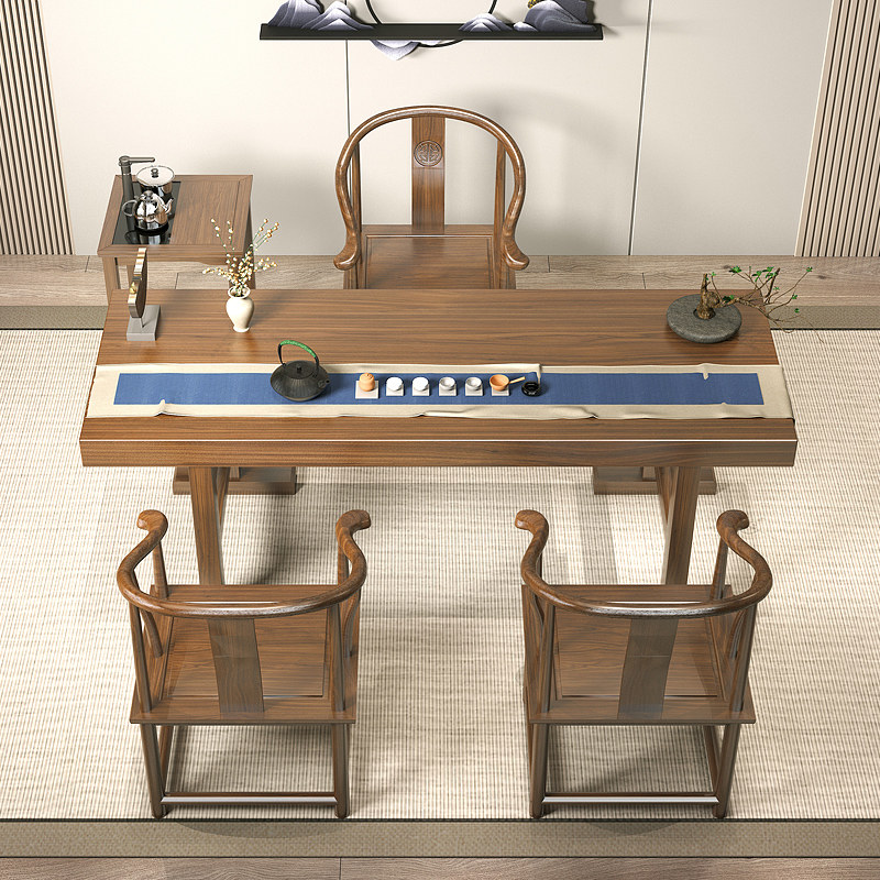 Chinese style solid wood tea table and chair combination kung fu tea table home big board tea table set one office desk