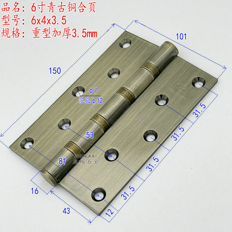 Geshigao Gersee High Stainless Steel Bearing Hinge 8 Inch Villa Gate Heavy Thickened Hinge 6 Inch Greens Bronze