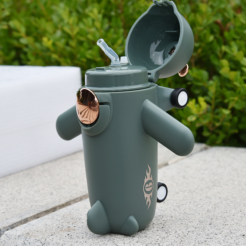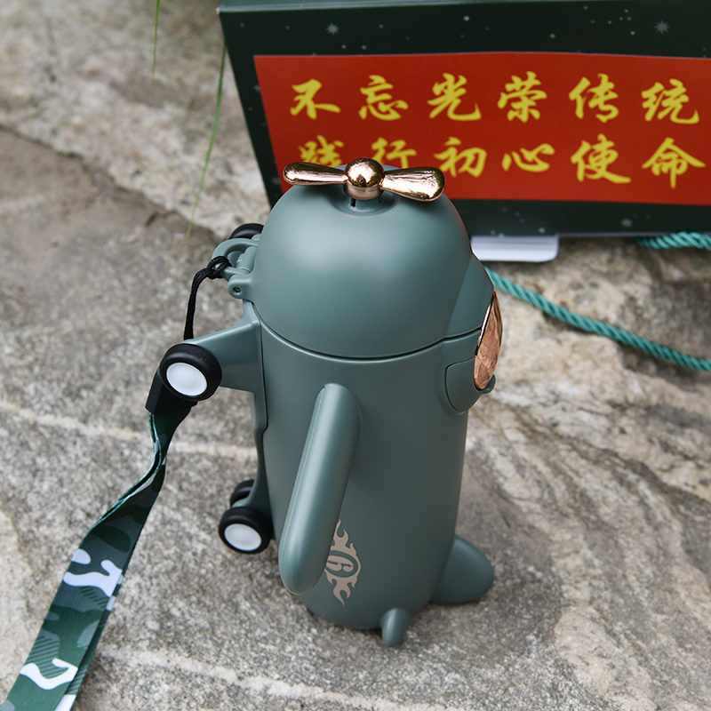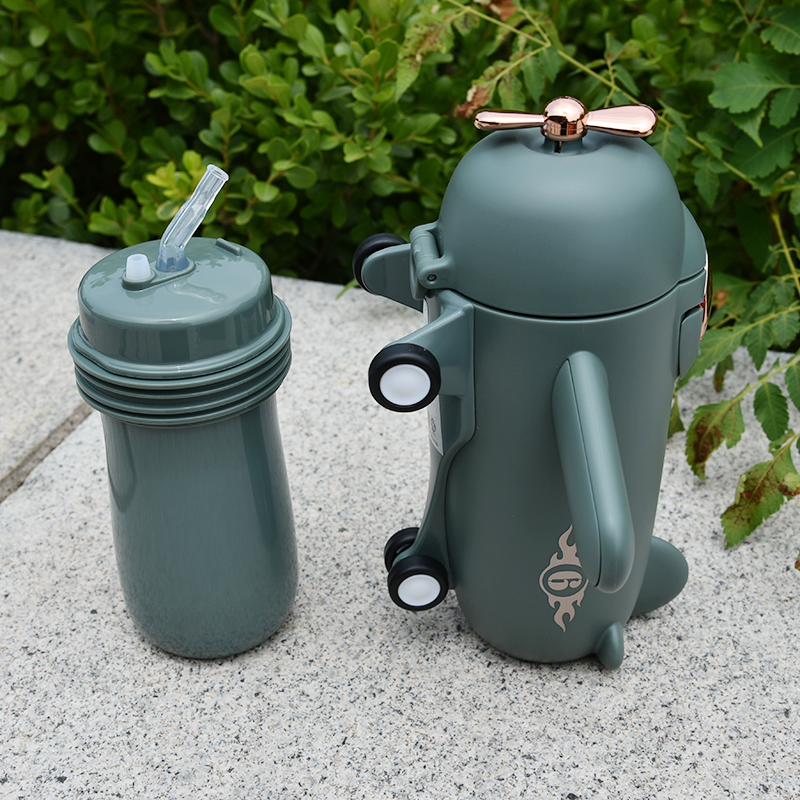 Children's Kettle with Straw Aircraft Water Cup 316 Stainless Steel Anti-Fall Going Out Carrying Cartoon Toy Strap Insulation