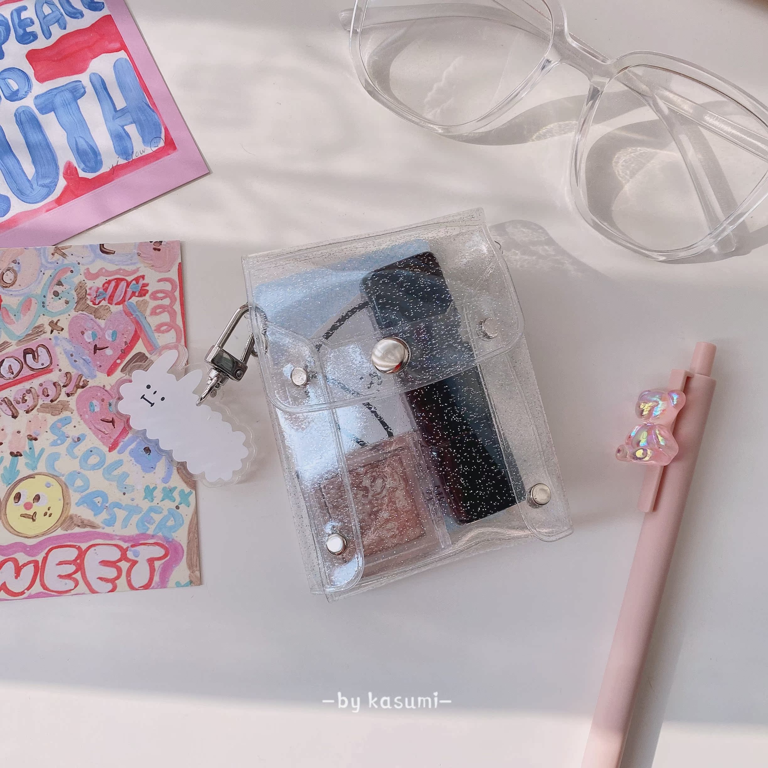 Vertical Paragraph Transparent Card Bag Small Milk Goat Pendant Vertical Section Transparent Shiny Pink Card Bag Small Milk Goat Pendant