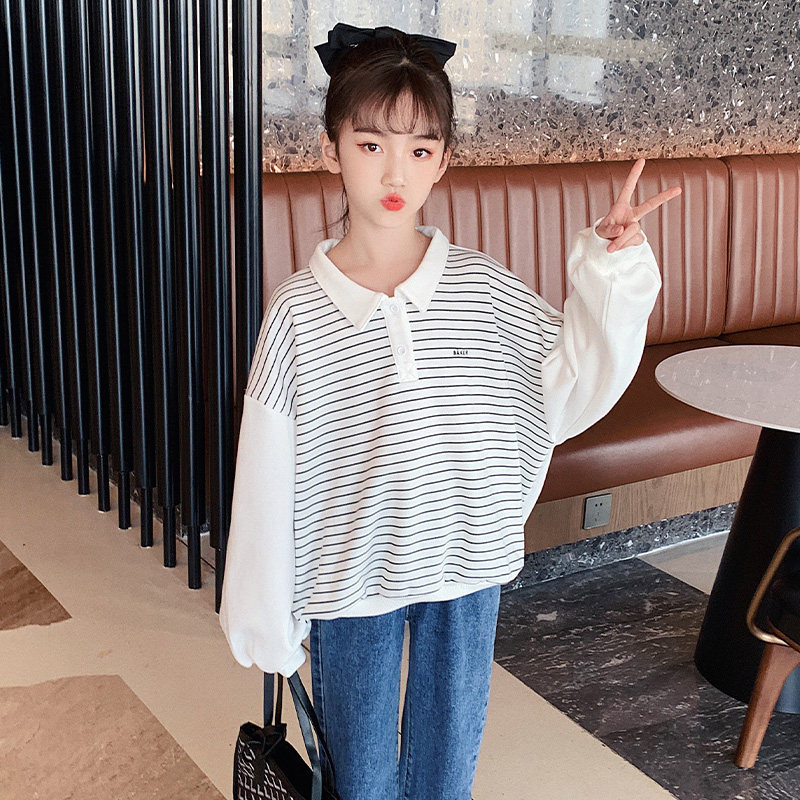 Girl's thick T-shirt Spring and autumn children's blouses 2022 new spring clothing Korean version of the internet Red CUHK Bottling Polo Shirt Tide