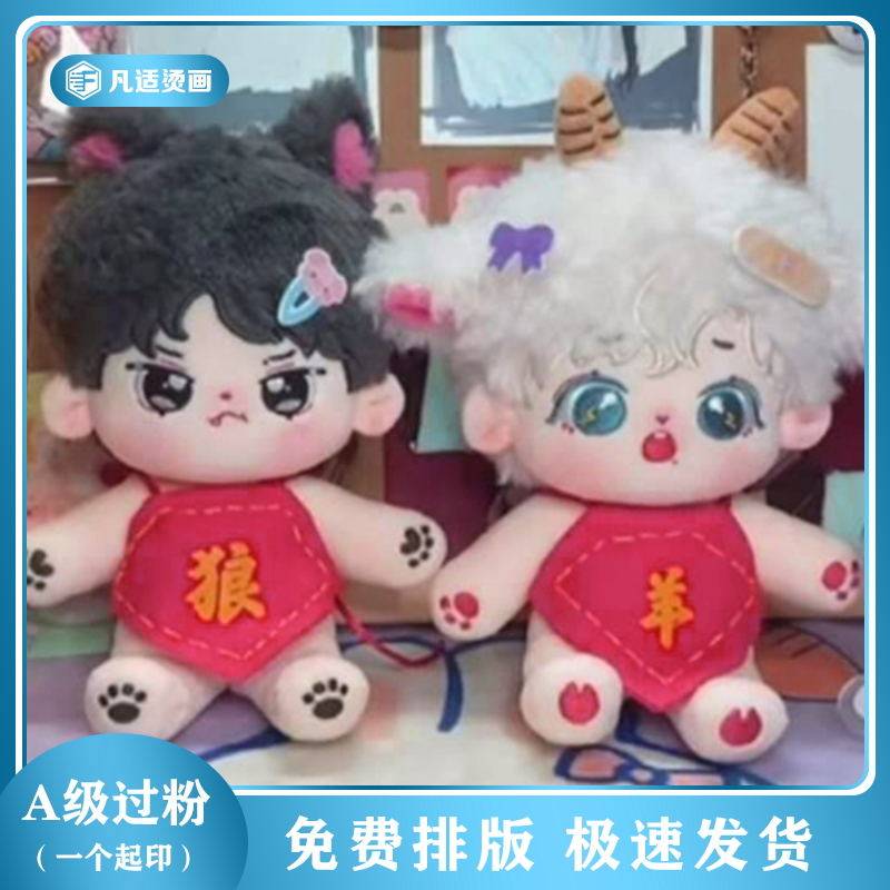 Zhongfu Word Golden Wolf Sheep Fan FDI 2 5*2 5cm white ink discharge-free hot painting