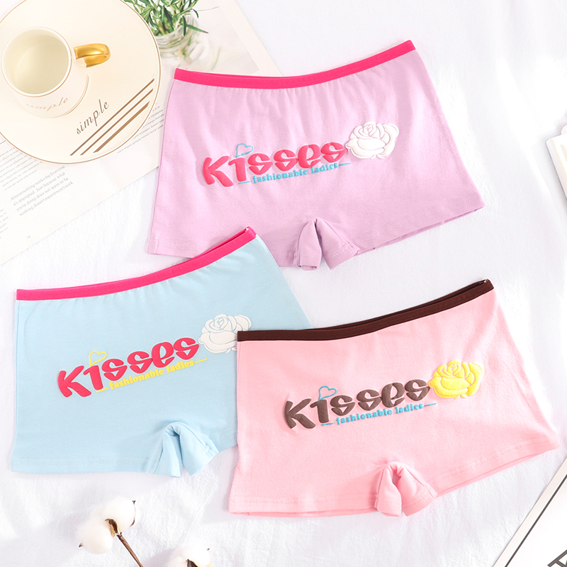 High school student Teenage Girl Four-corner Underpants Female Pure Cotton Four-corner Girls Day Tie leg Flat Feet Shorts head Summer Grand size