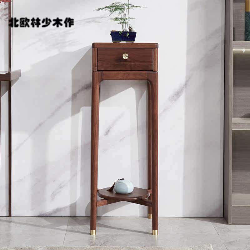 New Chinese-style solid wood flower shelf living room floor-standing North American black walnut flower shelf storage indoor high-end flower pot rack