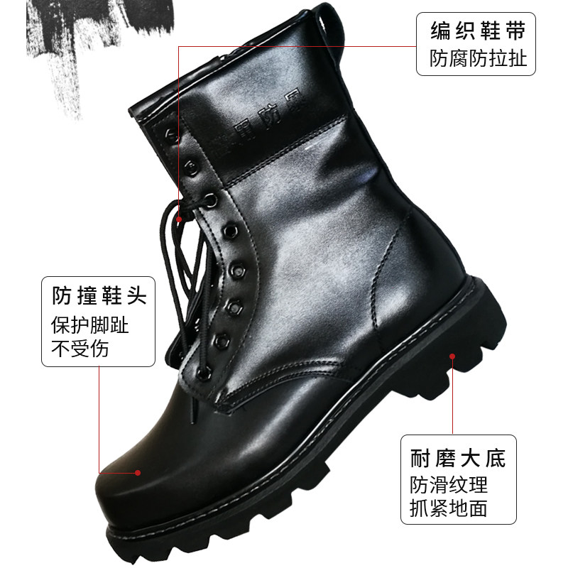 Zipper Martin boots spring and autumn summer outdoor army fan boots men's leather outdoor large size waterproof riot-proof training boots