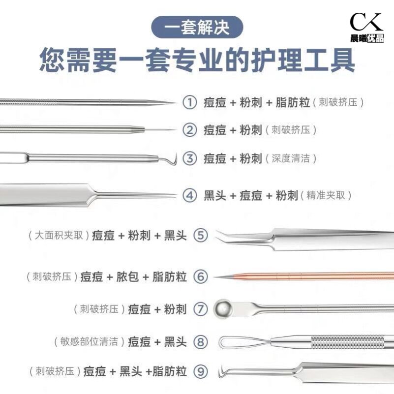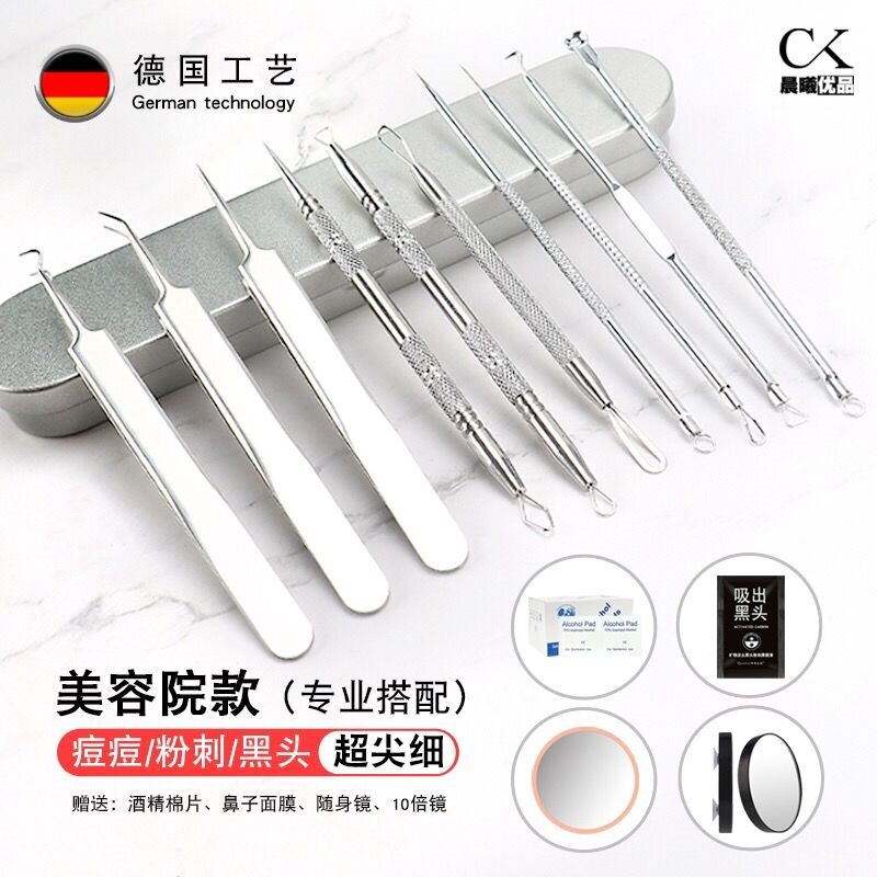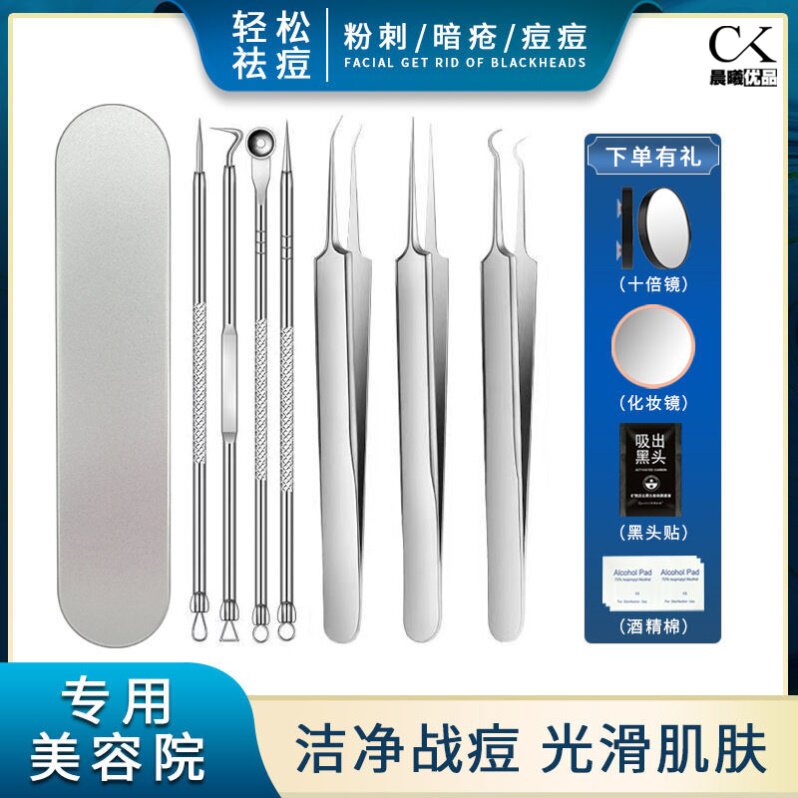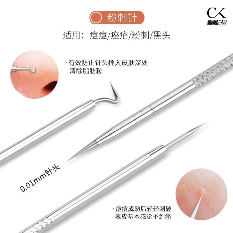Upgraded super-pointed acne needle storage box beauty rose gold super-pointed needle mirror box alcohol cotton 8 pieces silver base 4-piece set small mirror 8 alcohol cotton silver base 4-piece set 10 times mirror