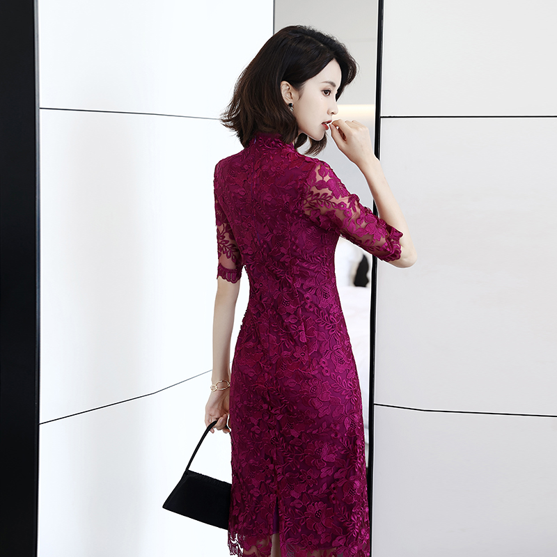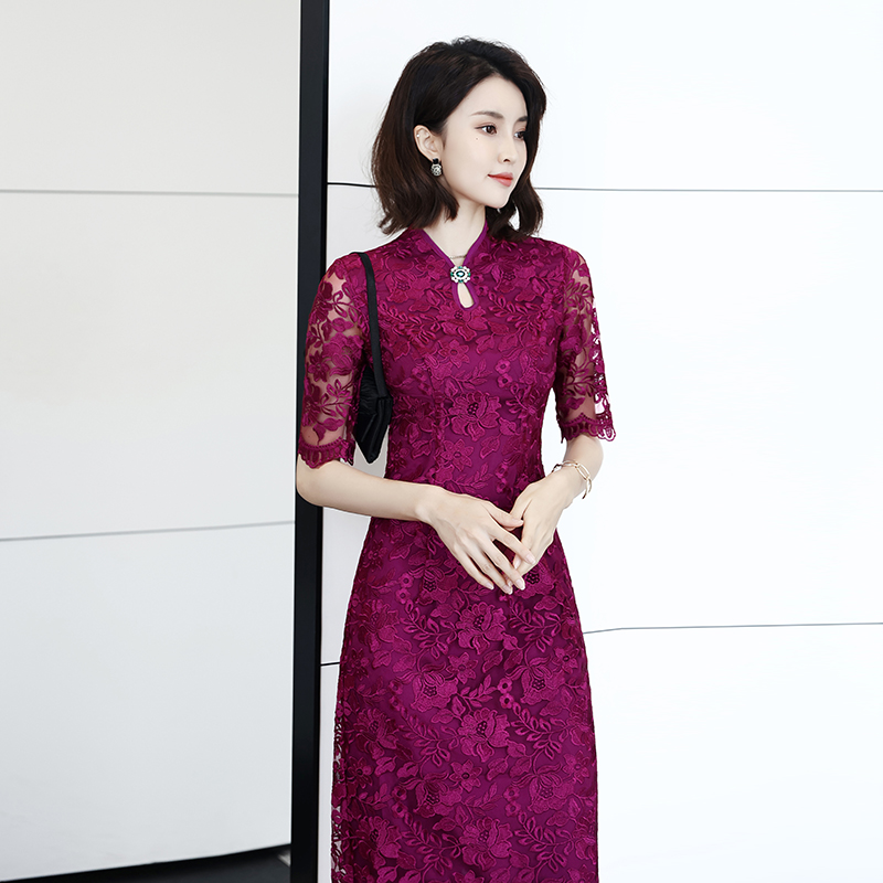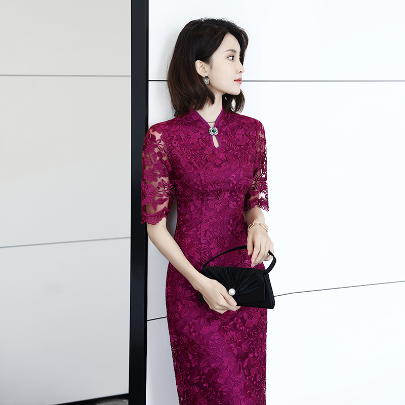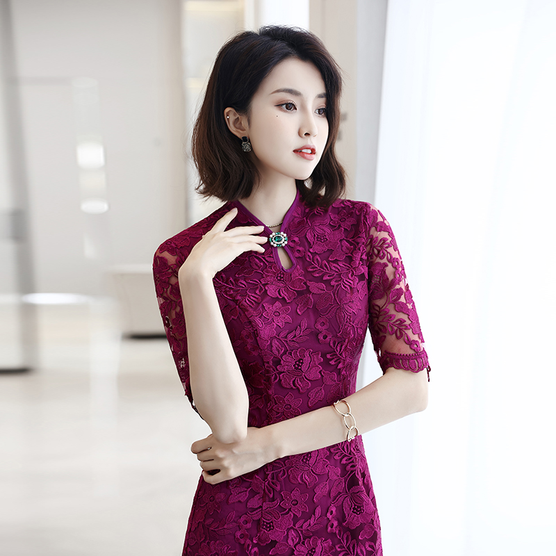 High-end evening dress women's banquet noble and elegant temperament large size lace skirt mother's dress wedding banquet wedding small summer