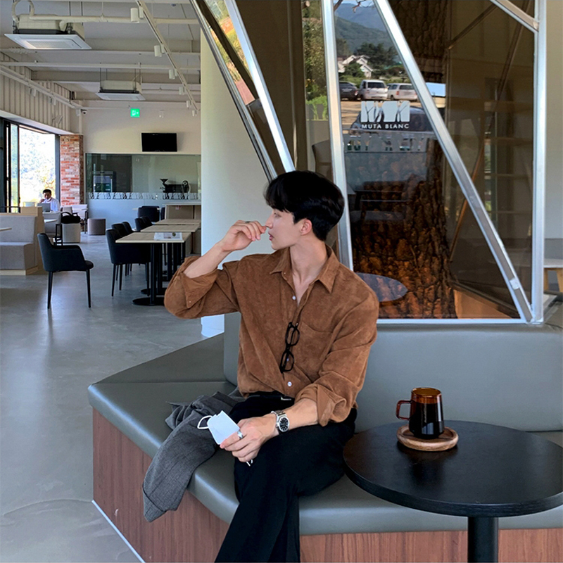 Bisher 2021 autumn lamp core suede shirt Korean version trend handsome long sleeve harbour wind retro 100 hitch casual shirt jacket