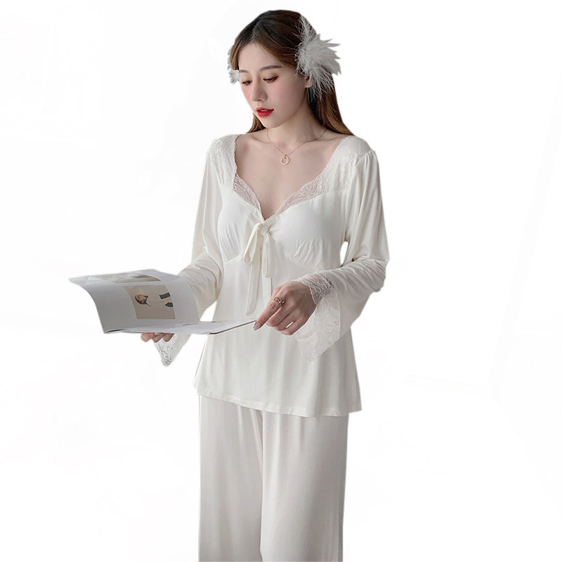Pyjamas Spring and Fall Model Pure Cotton Long Sleeve Sexy Lace Superior Home Clothes