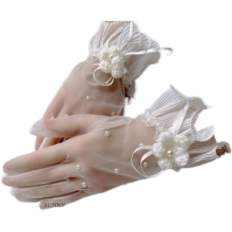 Bridal gloves elegant and beautiful wedding wedding dress lace short mesh high-end pearl photo props wedding supplies
