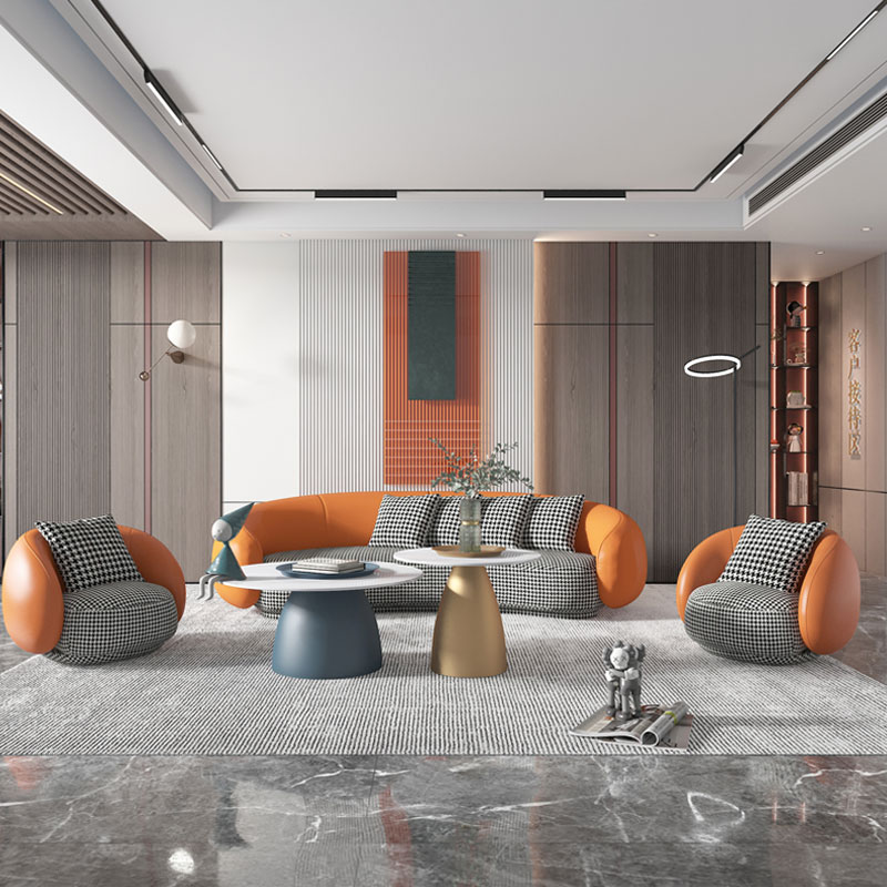 Clothing store lounge area sofa light luxury small apartment net red office leather fabric technology cloth curved small sofa