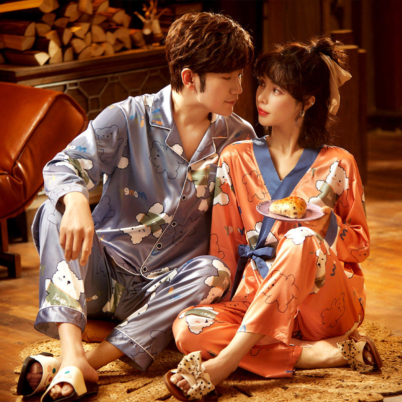 Fy fangyi lovers sleepwear women's spring autumn 2021 ice and snow silk sweet and beautiful Japanese summer men's silk home clothes