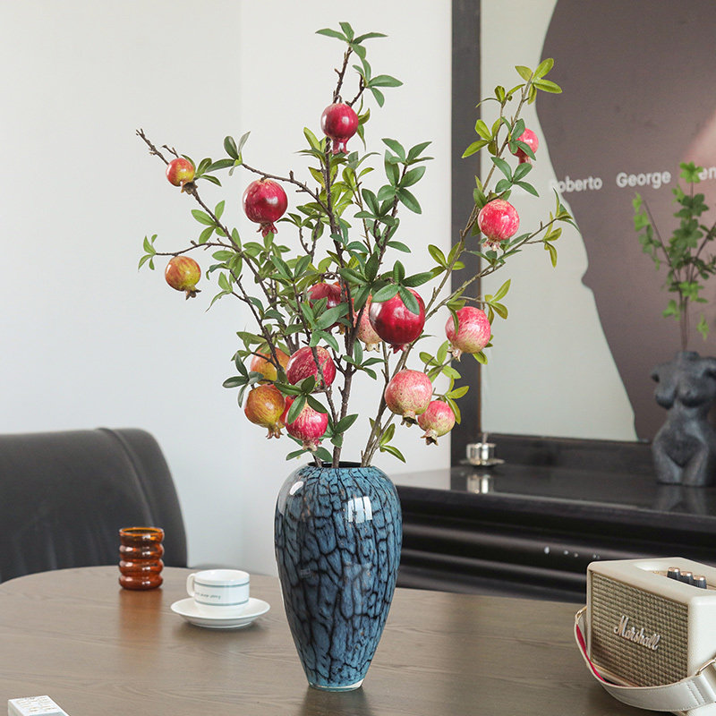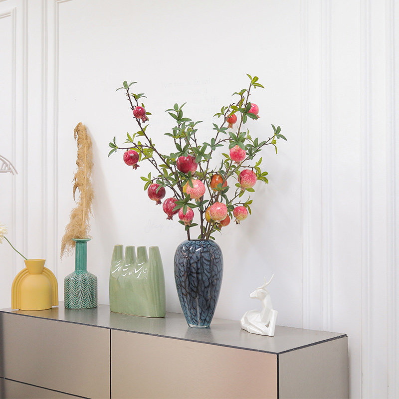 Retro high-end simulation flower plastic fake pomegranate indoor living room decoration table decoration flower arrangement flower branch