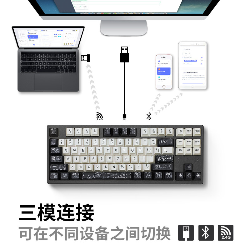 Cisfondal Superior A87 Wireless Triple Model 2 4G Bluetooth Wired Customised Hot Plug Shaft Mechanical Keyboard Game 87 Key 104 Key Large Complete 136 Key Sublimation
