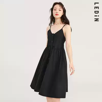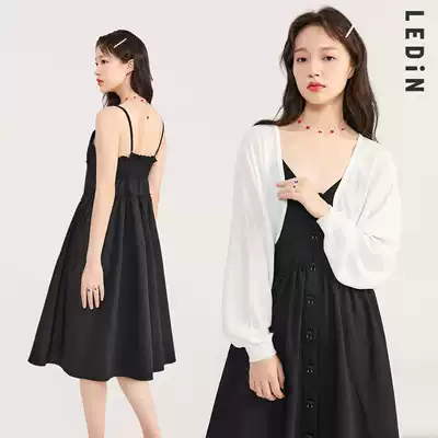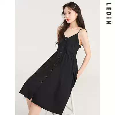 Lechi temperament suspender skirt 2021 Autumn New sweet little black dress dress fairy niche long dress gentle wind