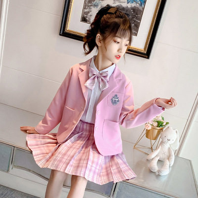 Girl Suits Suit 2021 Spring Dress New Children Little Girl Superocean Jk Uniforms College Wind Three Sets Eben