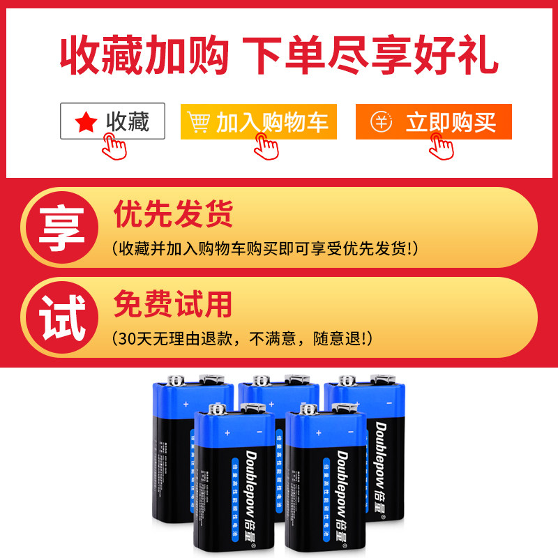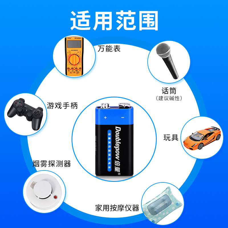 Double quantity 9V Battery Nine volt block battery 6F22 Carbon Universal Vance with electricity meter Remote control Body Temperature Gun Stack Battery Square Smoke Siren Microphone Microphone Universal Non Charge