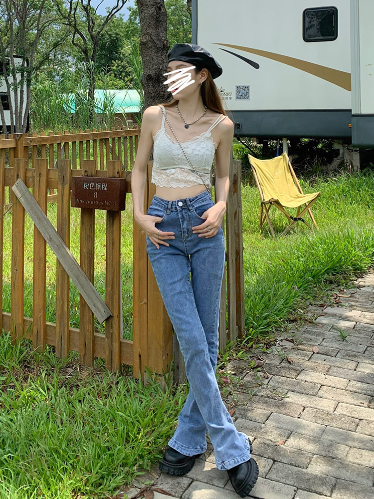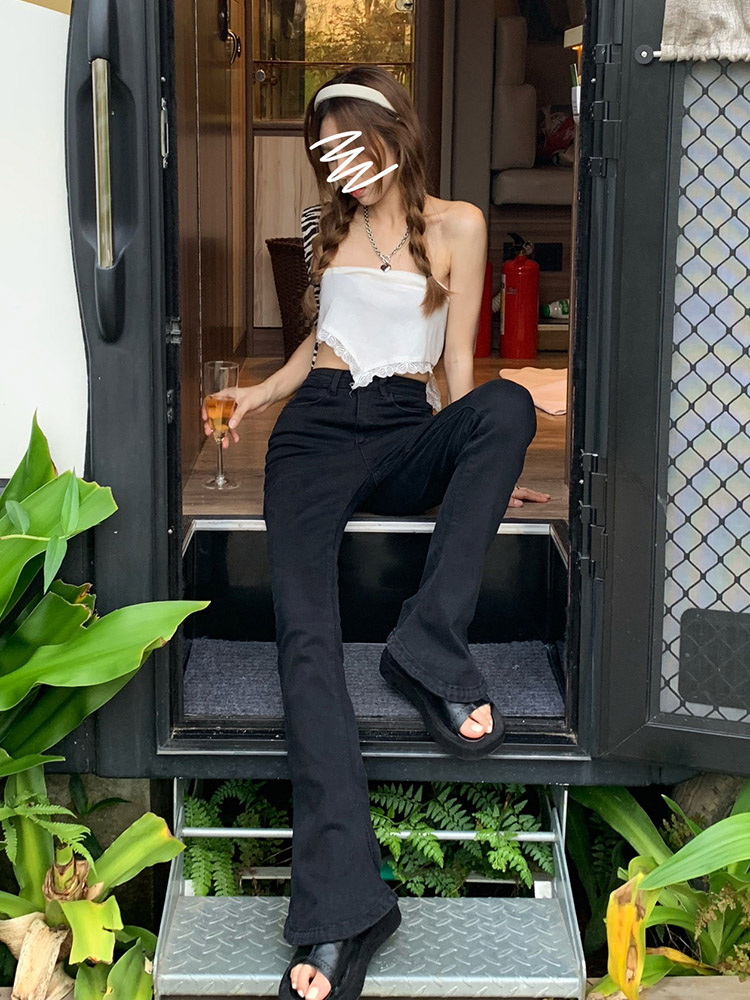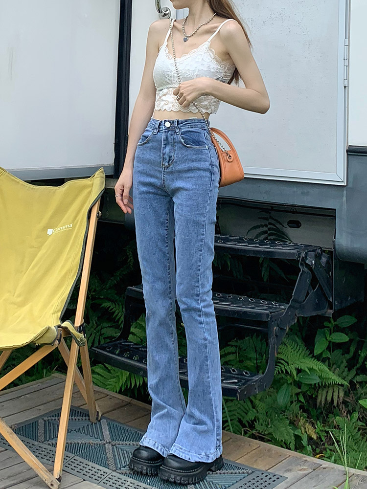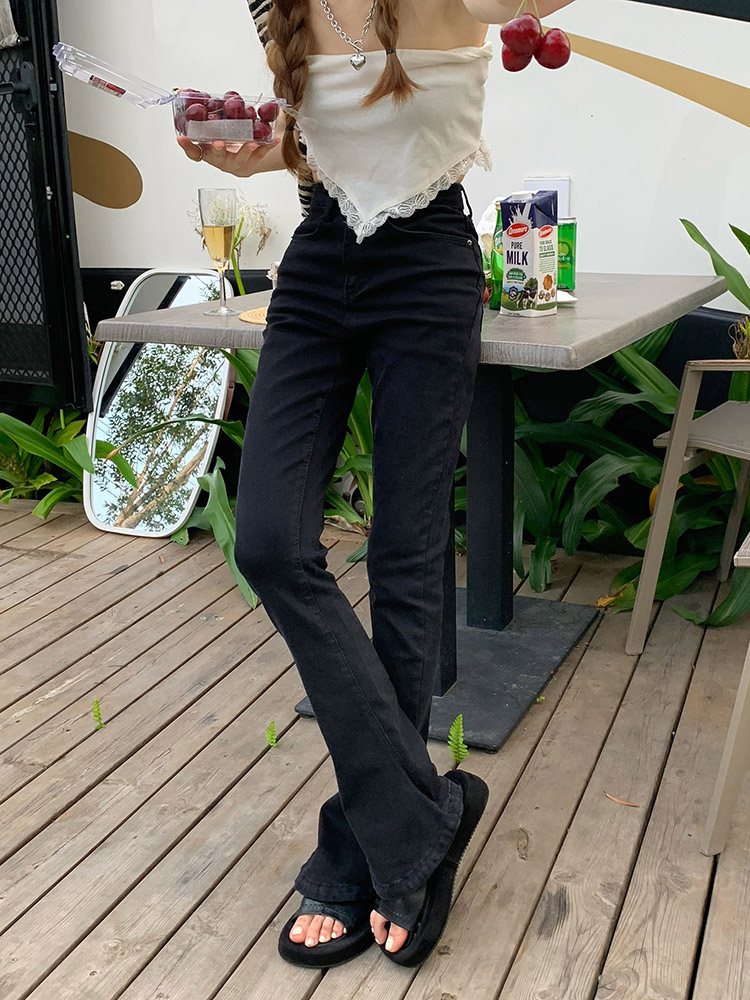 RJVO denim trousers women's 2022 early spring new small all-match casual elastic high waist slim horseshoe pants