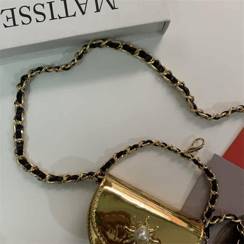 Net red ins mini waist chain small bag female woven Korean fashion chain belt ladies decorative messenger bag tide