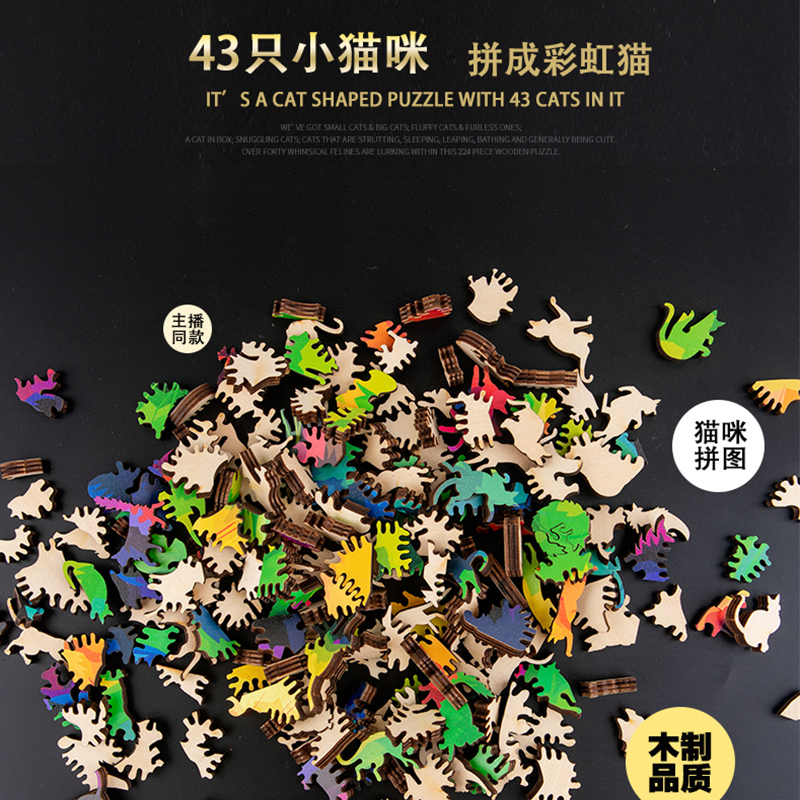 Rainbow cat puzzle wooden special-shaped high-difficulty puzzle 1000 pieces adult decompression and boring hell educational toys