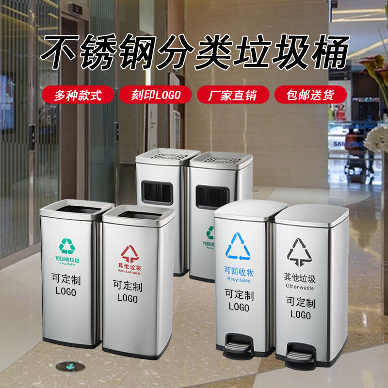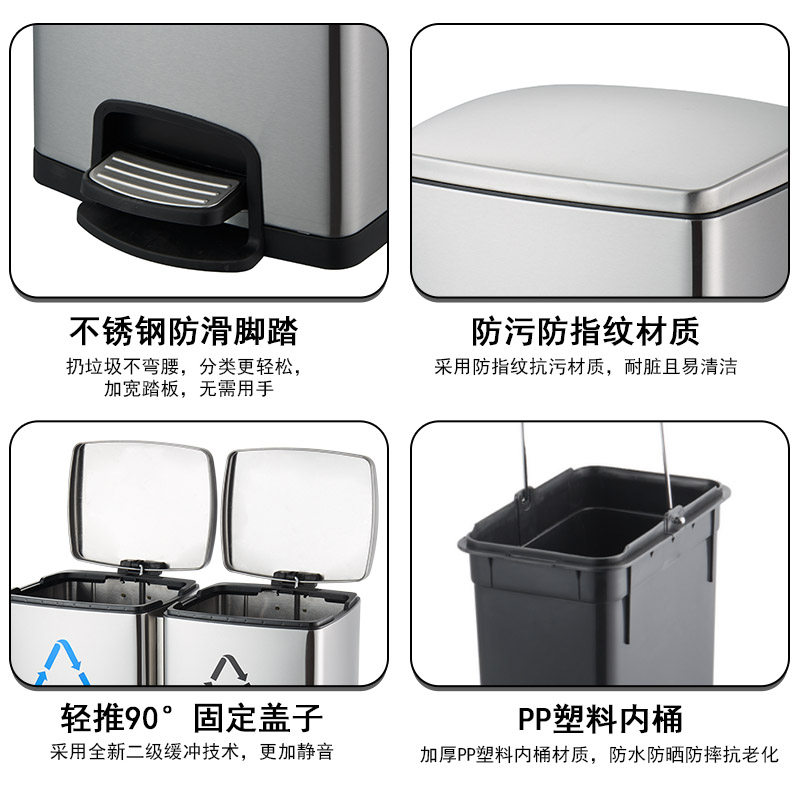 Stainless steel side opening positive square single barrel (30L) stainless steel straight throw single barrel (30L) stainless steel pedal single barrel (30L) stainless steel side open single barrel (30L) stainless steel straight throw two classification barrel (