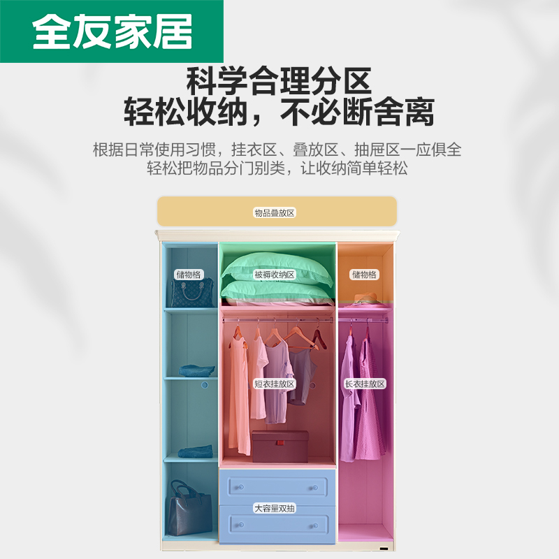Full Friend Home Bedroom Closet Kitchen Garden Wind Induction LED Lamp Large Capacity Containing Storage Four Doors Wardrobe 120626