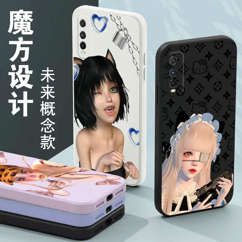 Millennial Hot Girl Phone Protection Shell VIVOY70S Gothic Sweet spicy Wind Vivo Tuku Mom See beating IQOOU1X Large scale Angle Side Y30 Magic Square Y20 Liquid Silicone Square Full Bag