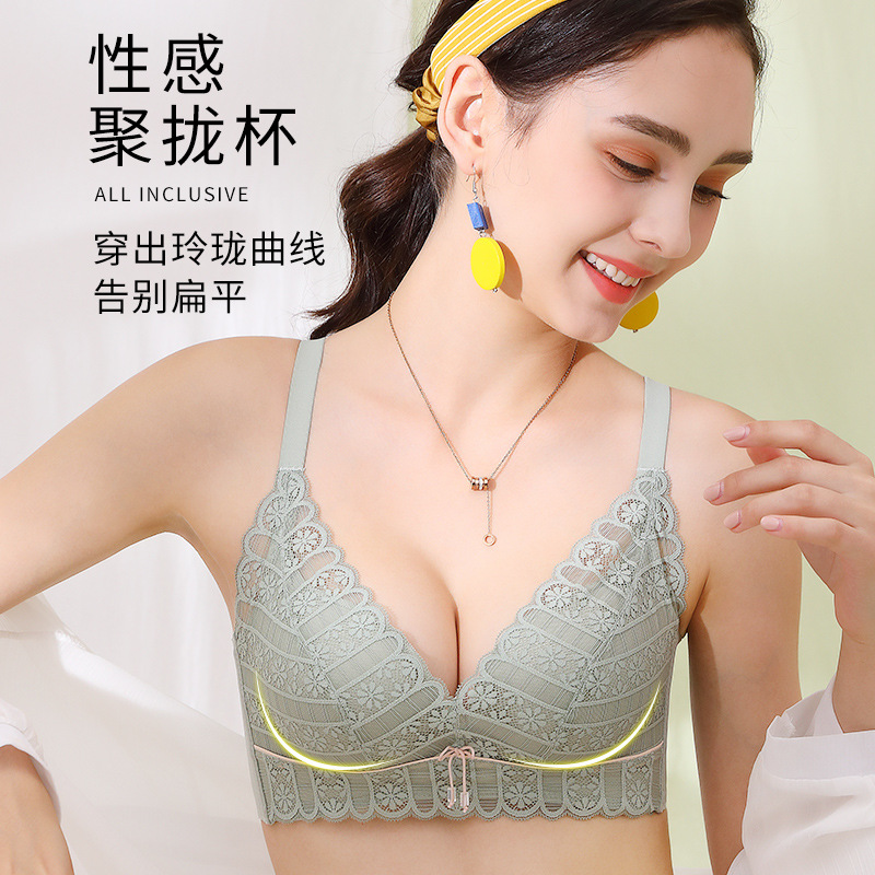 New latex lingerie female lace free steel ring No marks to gather auxiliary milk adjustment type underwear hood suit