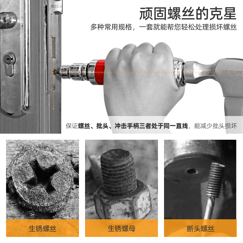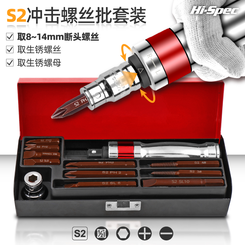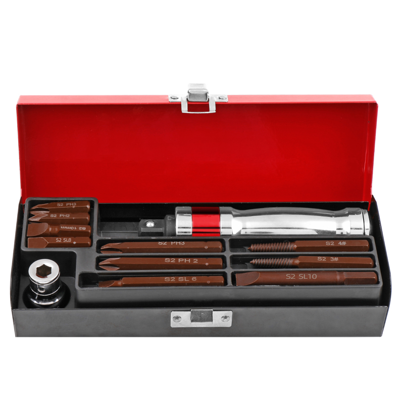 Impact screwdrivers hit and hit the hammer blow the screw driver shocks the batch to the rusting screw deviner knock the screwdriver set of sets