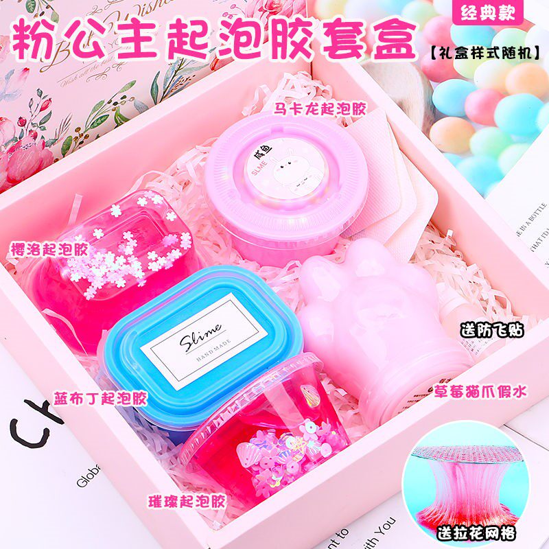 Foaming glue and fake water set children's macaron cement net red girl heart crystal mud gift box