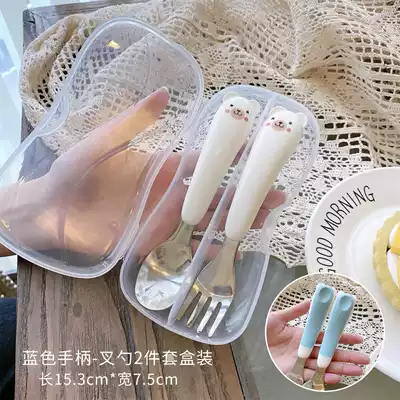 Stainless steel bear fork spoon-pink stainless steel bear fork spoon-blue small stainless steel fork spoon-red black rat stainless steel rabbit fork spoon-blue stainless steel rabbit fork spoon-pink chicken fork spoon box