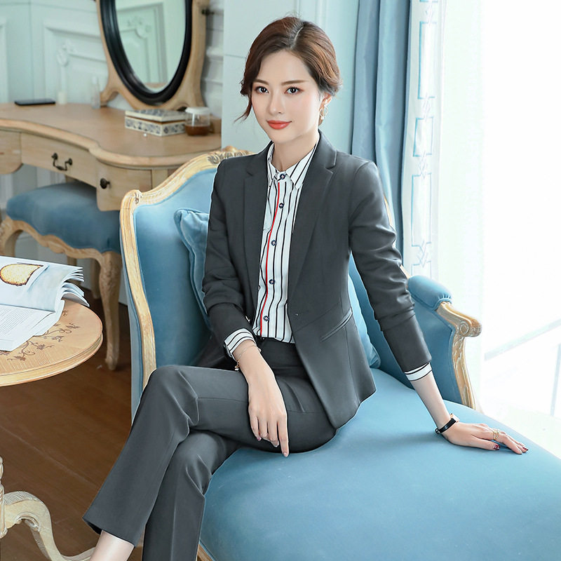 black jacket skirt black and white striped shirt blue jacket skirt blue and white striped shirt blue jacket trousers blue and white striped shirt black jacket trousers black and white striped shirt
