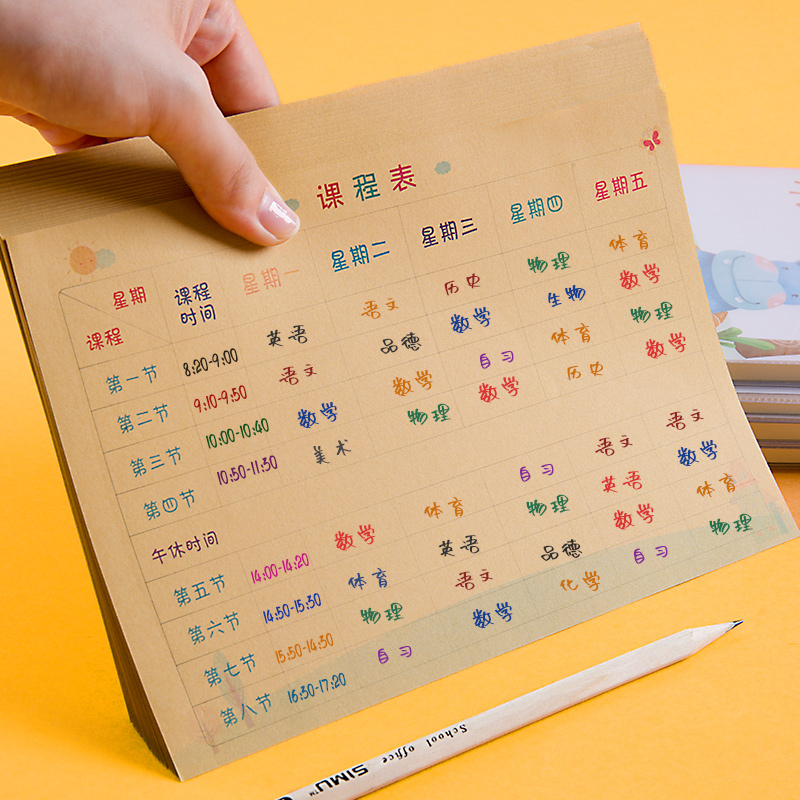 200 elementary school children class schedule cards small size carrying small number 12 3rd grade school of afternoon school of study subject plan table record card portable kindergarten children's course cartoon cute