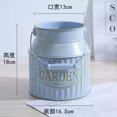Classical retro drying flower bucket portable milk jug drying flower Ware simulation flower decoration flower bucket home iron flower bucket ornaments