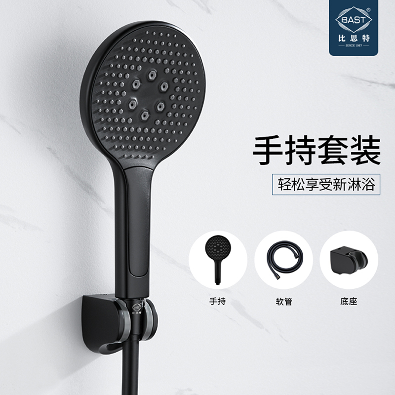Shower shower single head round hand-held shower nozzle shower head multi-functional rain black shower hose set