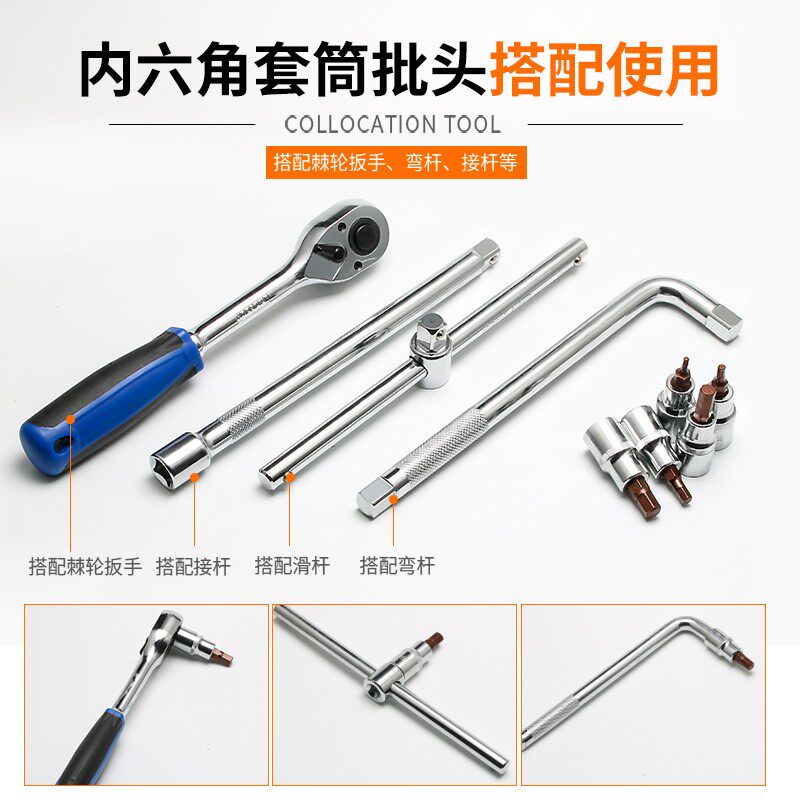 Inner hexagonal sleeve suit 1 2 lengthened pneumatic wrench inner hexagonal batch head s2 electric screwdriver screwup tool sleeve head tool