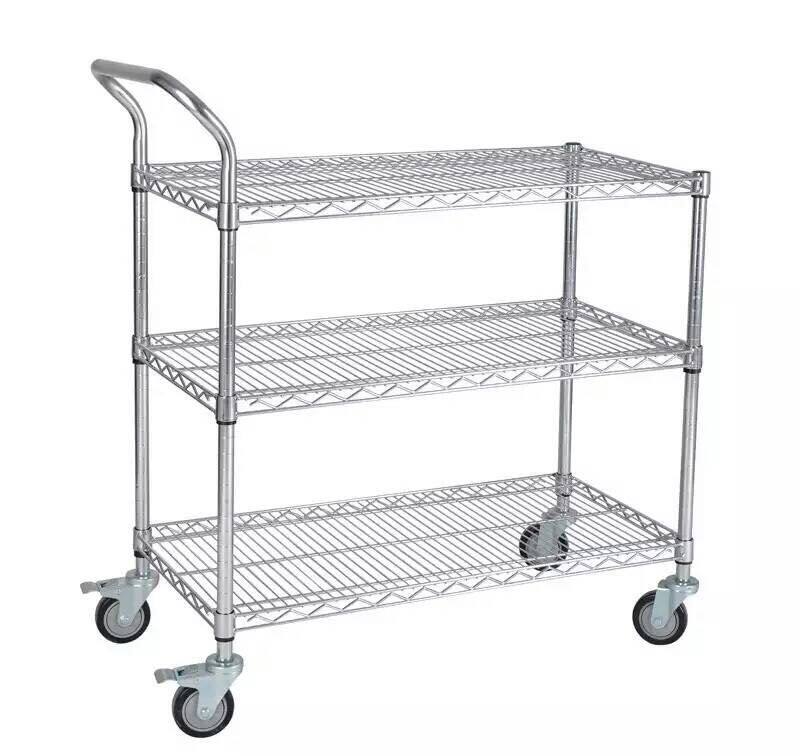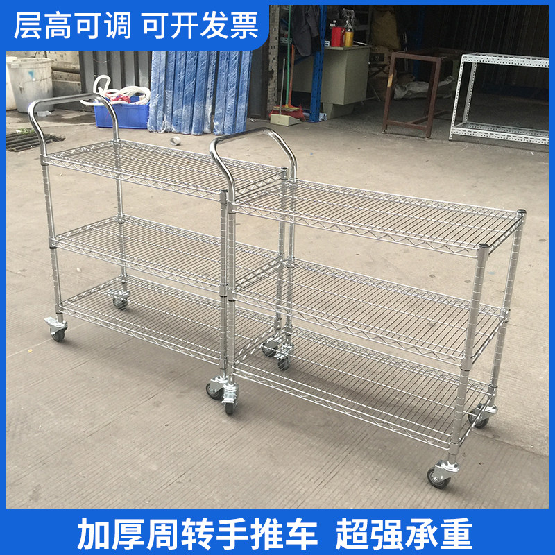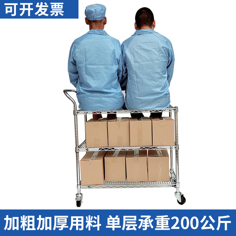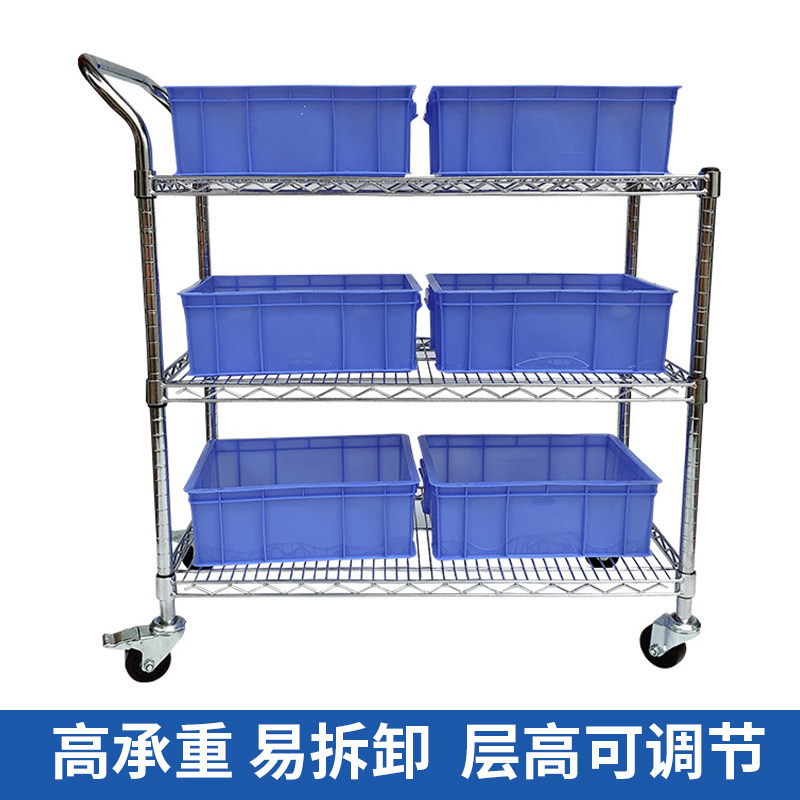 Three-layer stainless steel color shelf chrome-plated trolley warehouse turnover truck mobile e-commerce sorting truck logistics picking truck