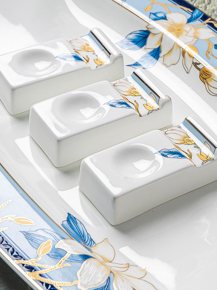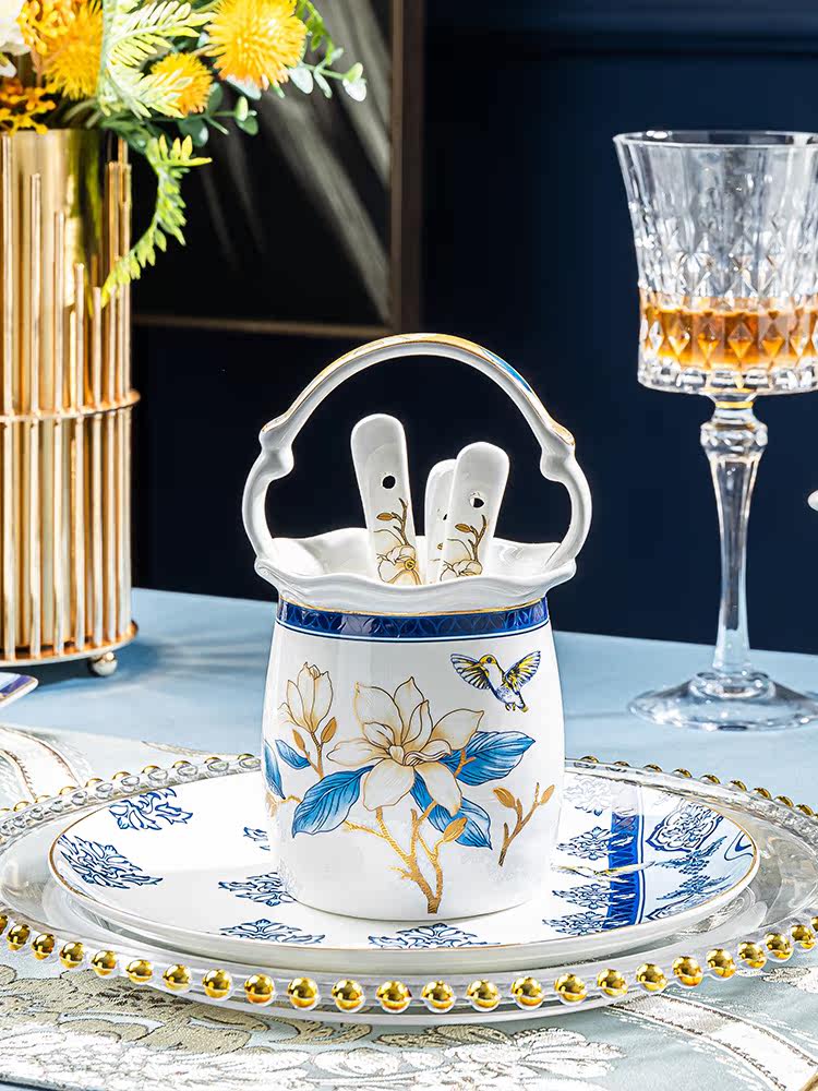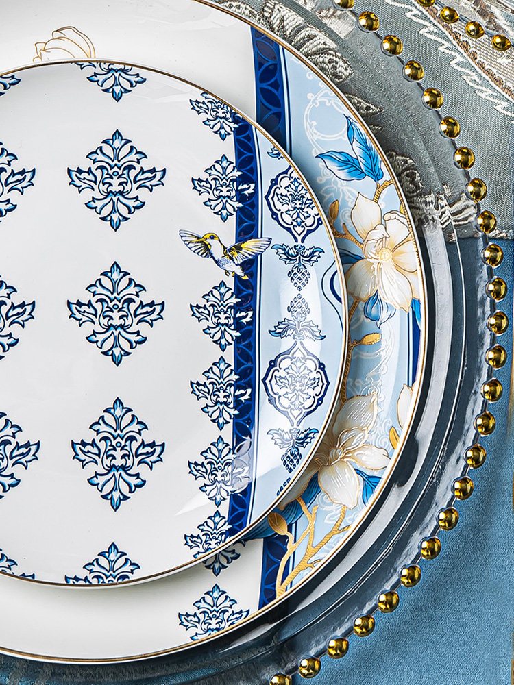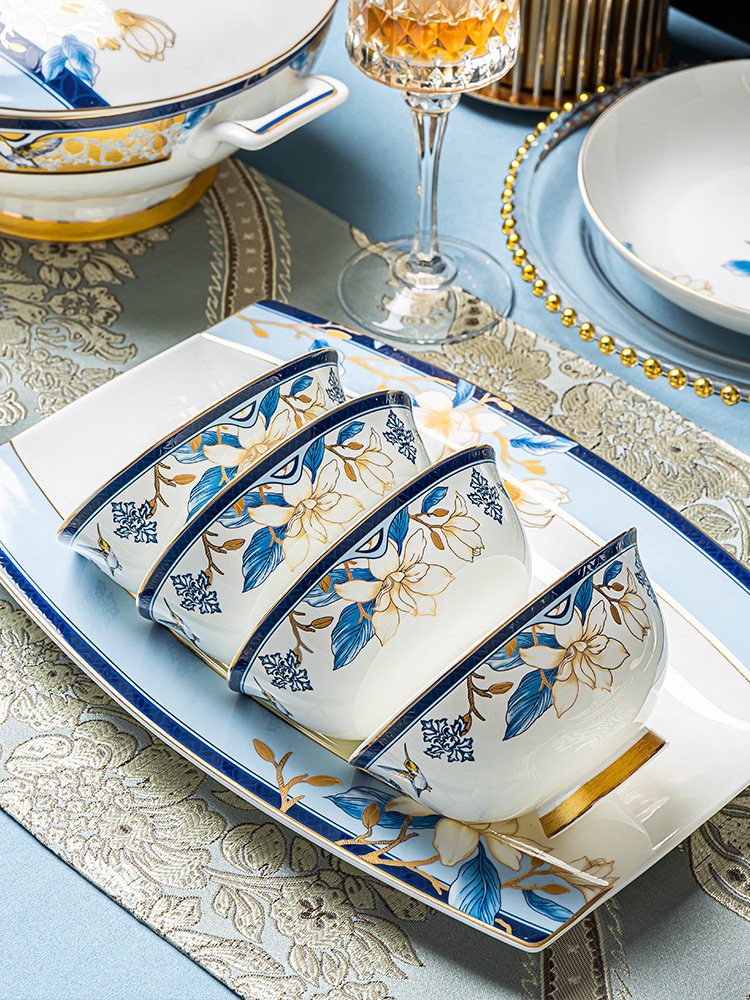 Qiao Porcelain National Style Tableware Set Bowls and Plates Household Rice Bowls Light Luxury High-end Bone China Jingdezhen Housewarming Set Bowls and Dishes