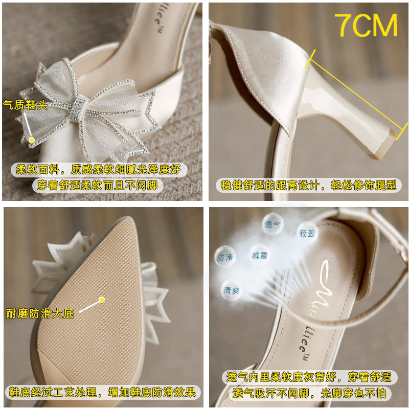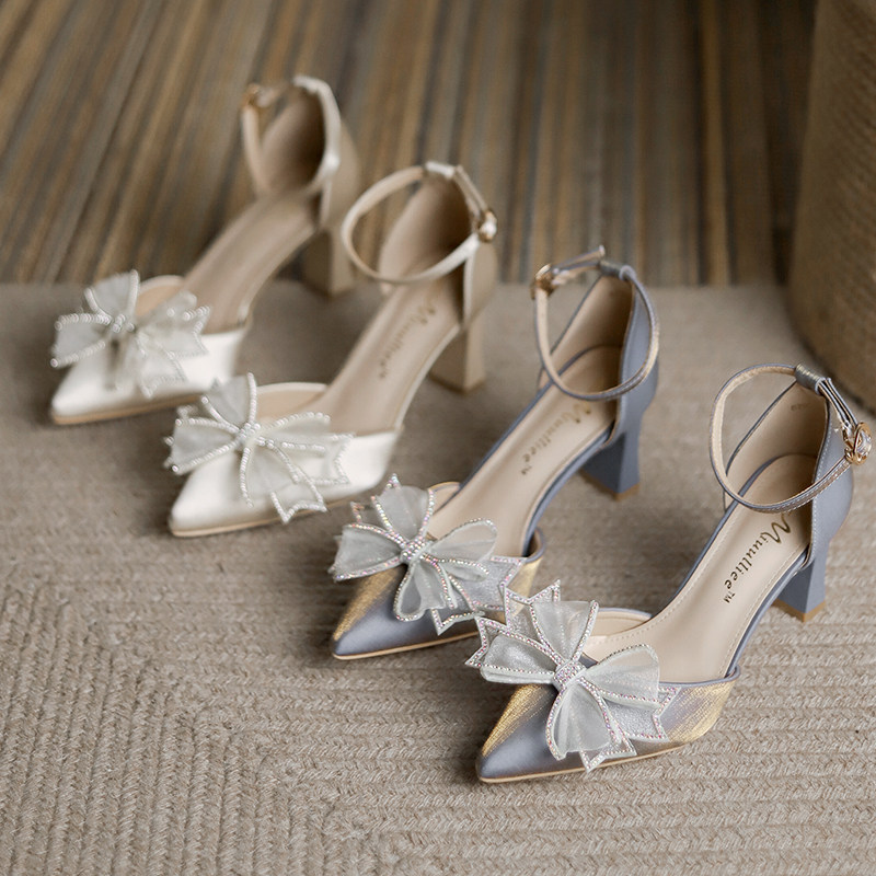 Coarse heel not tiring heels 2022 new custard with wedding shoes Bow Tie Bridesmaid Shoes Dresses Single Shoes