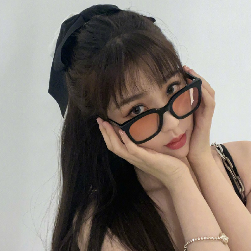 Yu Shuxin Zhao Lusi the same style sunglasses women's black frame gradient sunset yellow film sunglasses