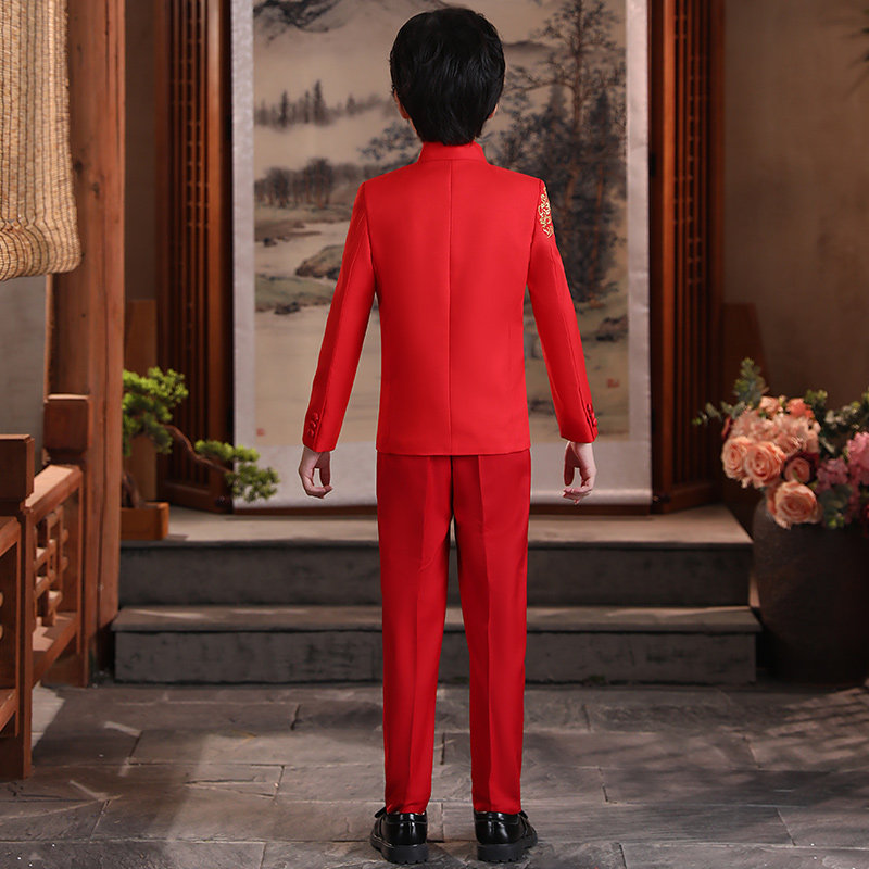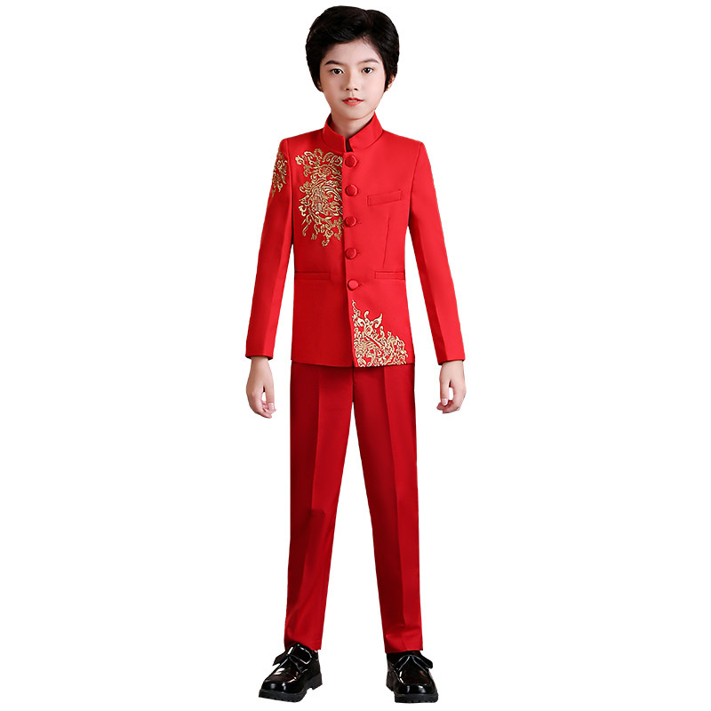 Boys tunic suit host dress Chinese style child model catwalk piano performance small suit handsome
