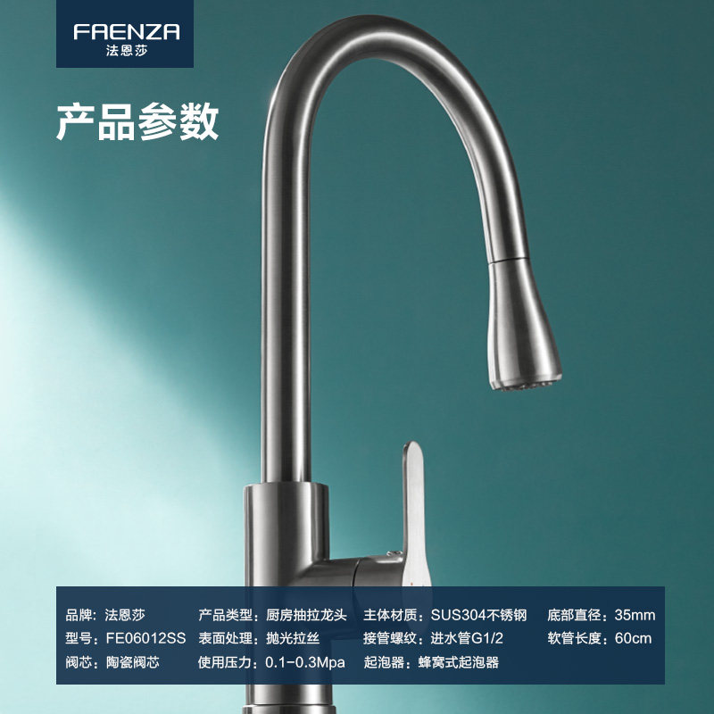 Farnsa pull-out rotary washing vegetable basin hot and cold tap kitchen bubble shower head double-head FE06012SS