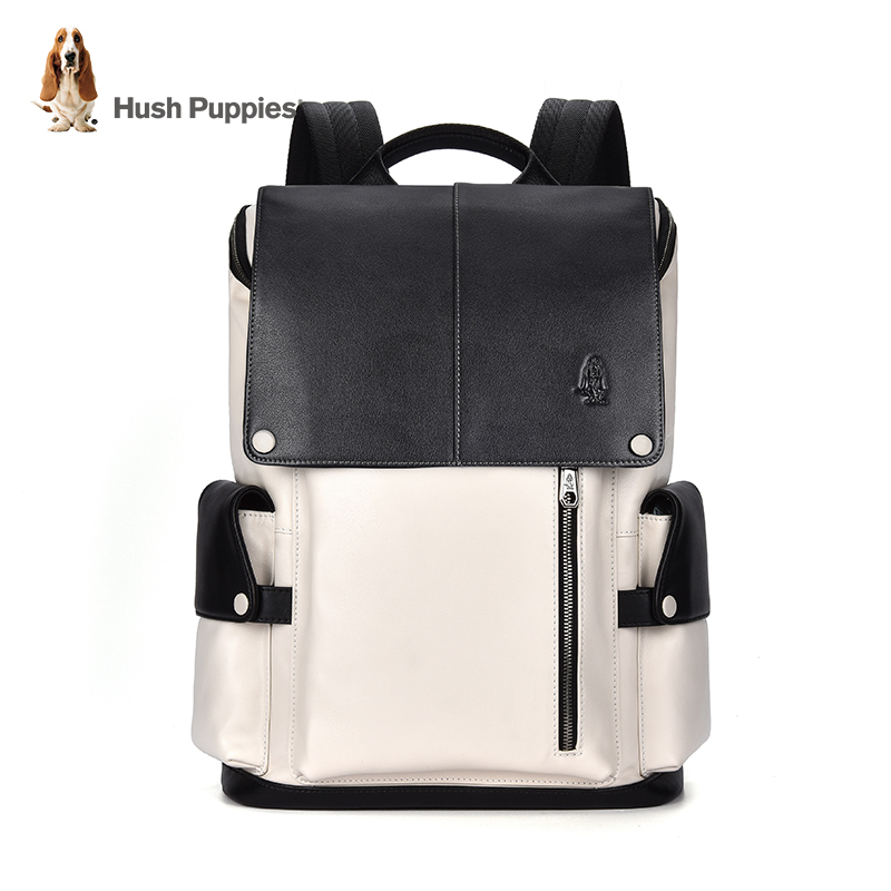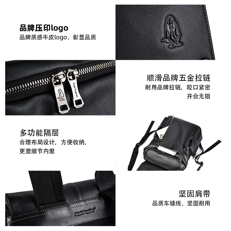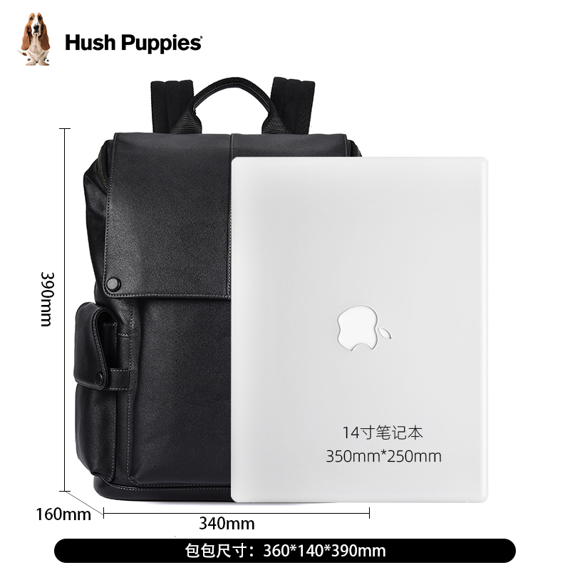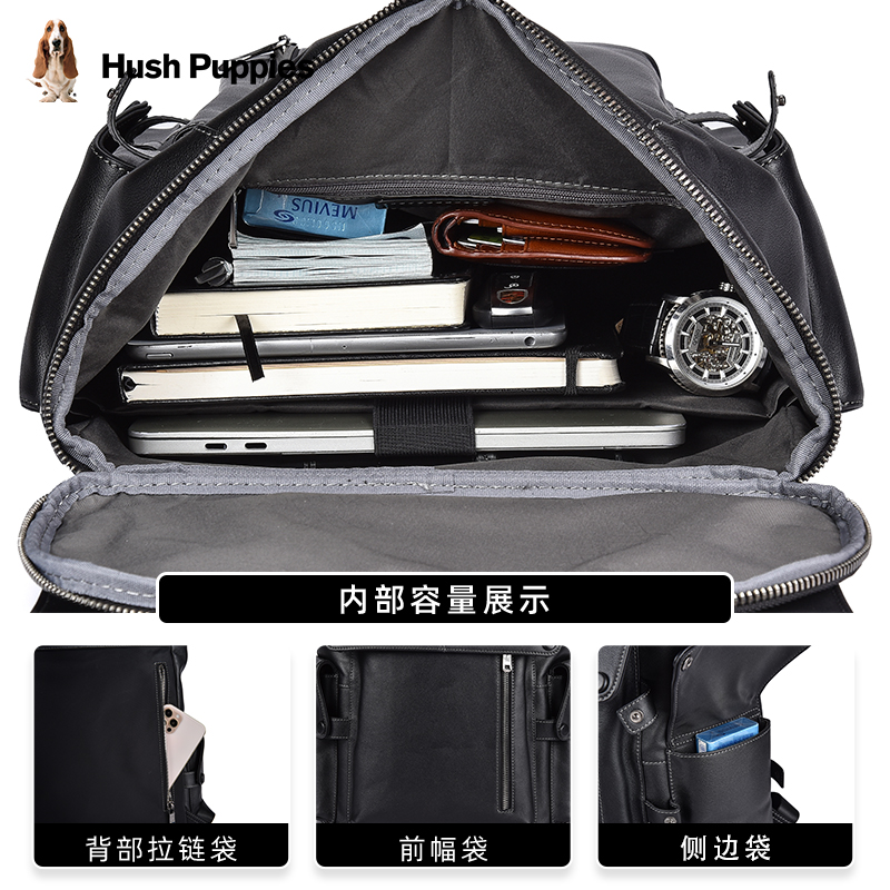 Hush Puppies Backpack Men's First Layer Leather Backpack Large Capacity Casual Computer Bag Fashion Trend Travel Bag Men's Bag