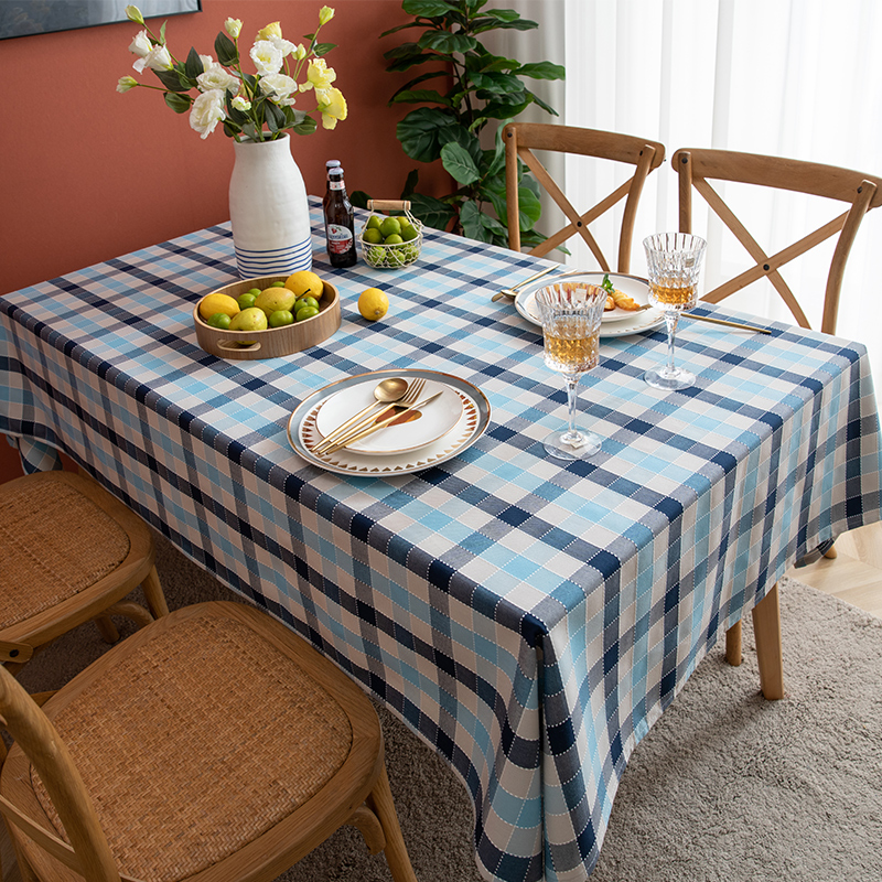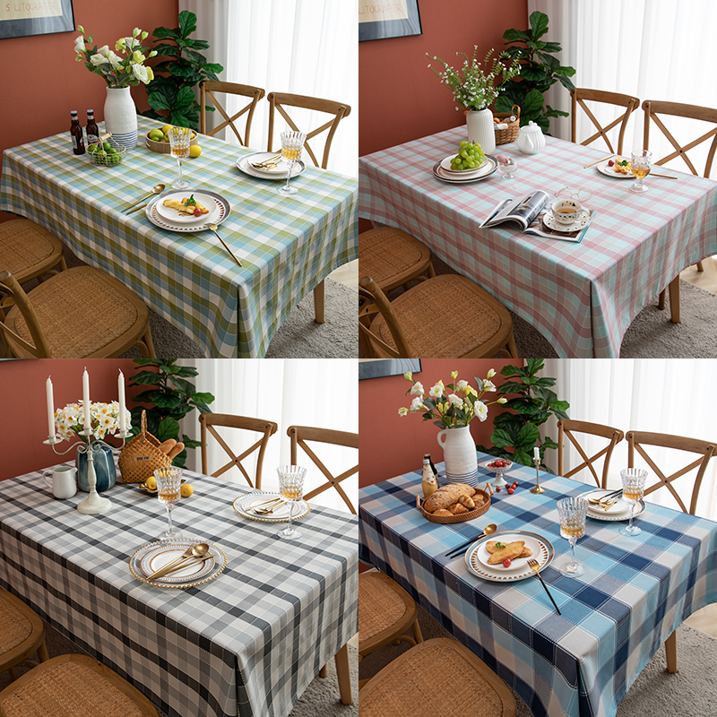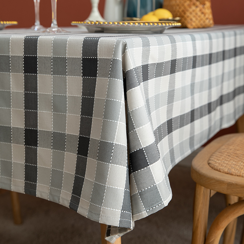 White colored plaid table cloth art Nordic ins wind thickened cotton linen small frescoed kindergarten home table cloth