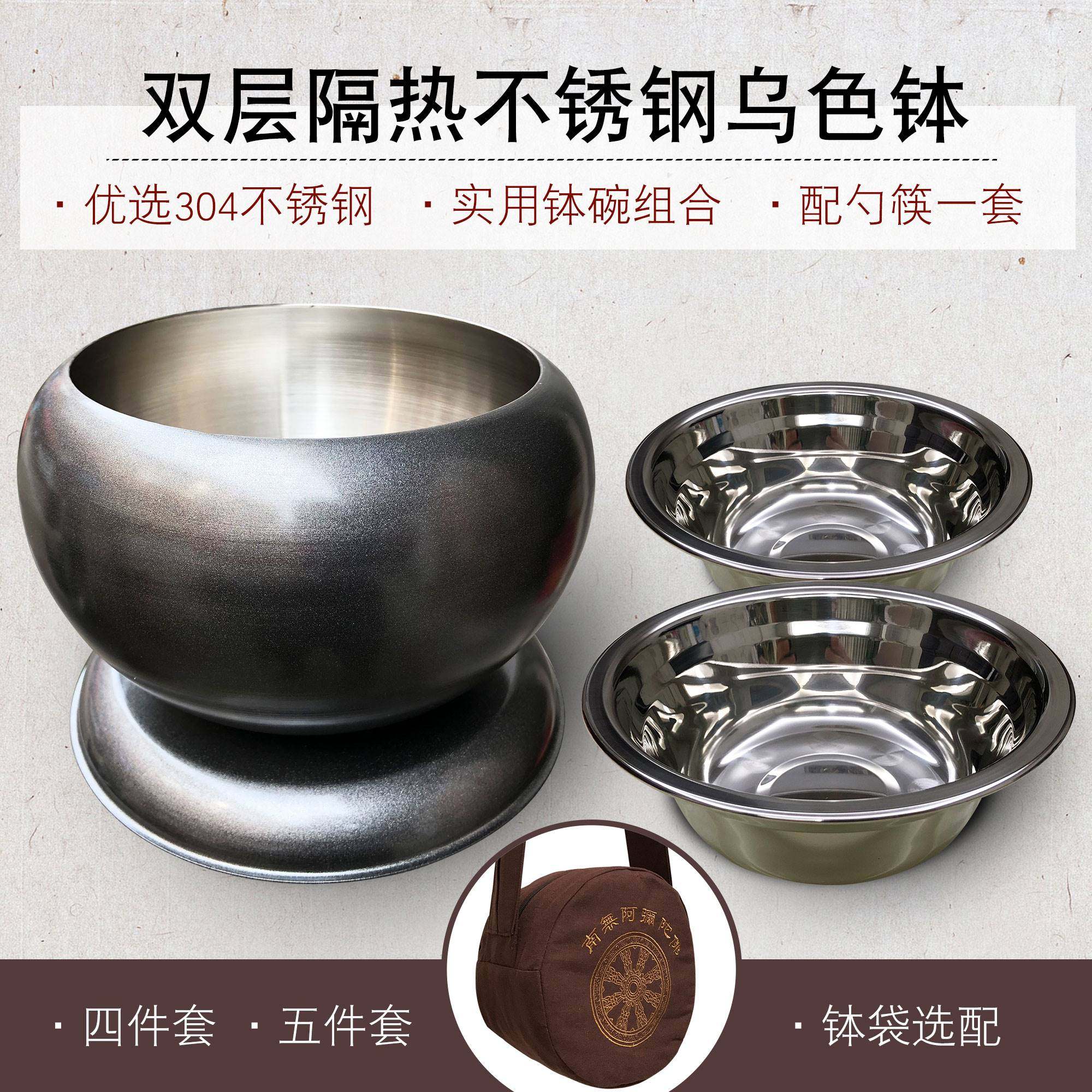 Buddha's Buddhist monk Purple Sand Bowl Pocket Bowl brush Double heat insulation monk Decorative Edge Bowl 304 Stainless Steel Bowl 5 pieces