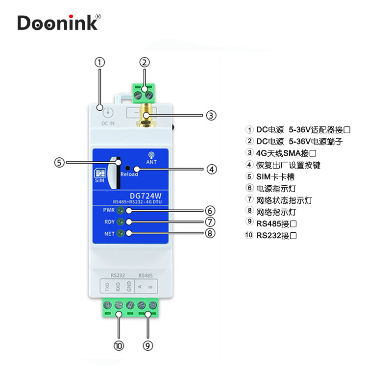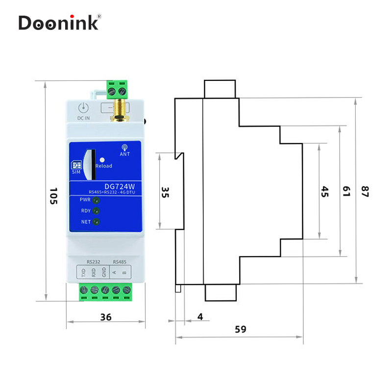 Doonink brand CAT1 industrial grade 4G rail type DTU IoT RS232 485 to 4G transparent transmission three Netcom module TCP MQTT Aliyun