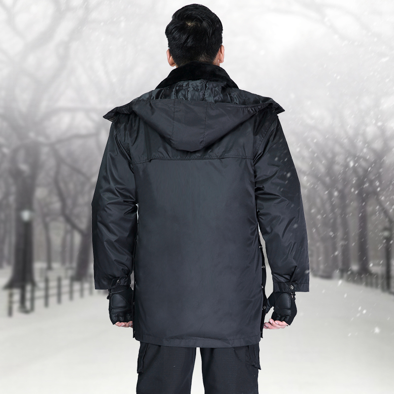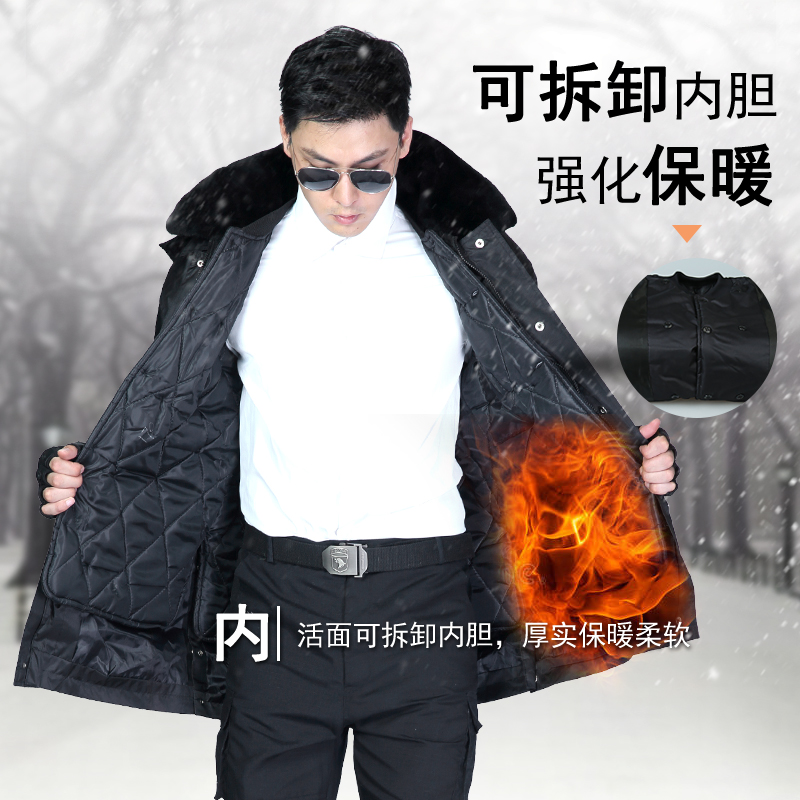 Medium-long version Army cotton coat men's winter thickened anti-cold black security clothes women's cotton padded jacket labor protection work for training and waterproof