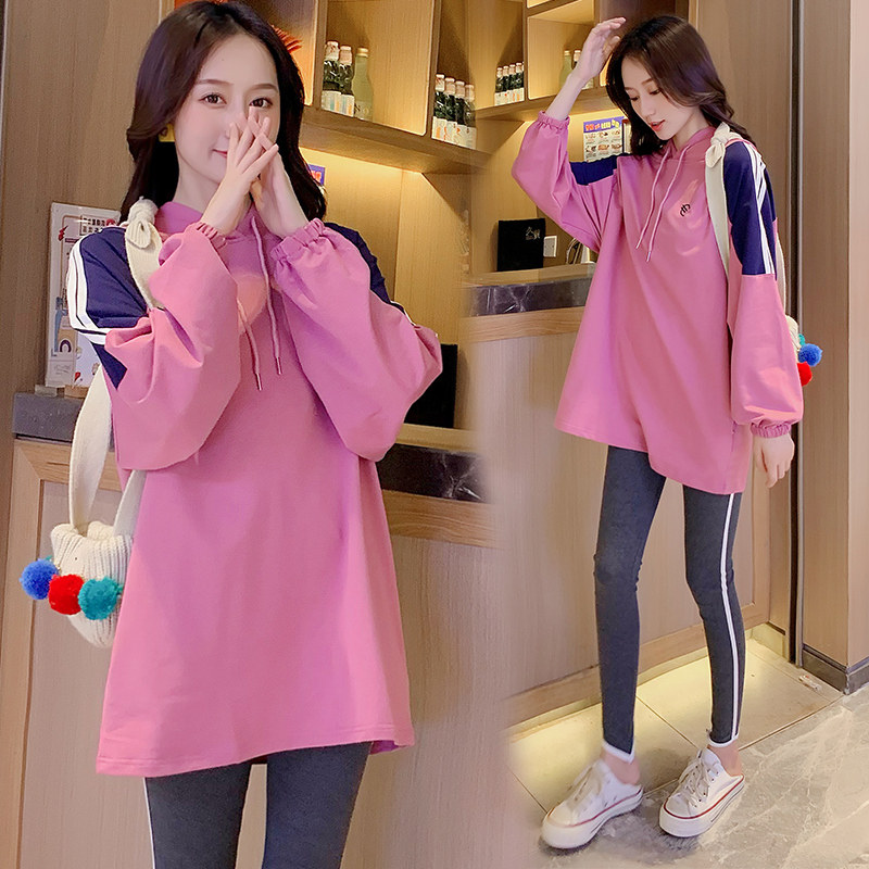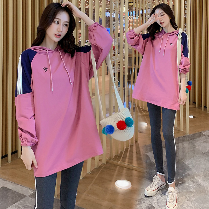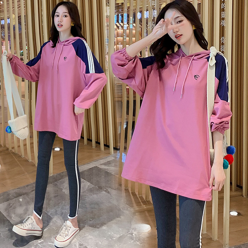 Pregnant women's autumn suit fashion models 2021 Spring and Autumn Han edition loose hat jacket two pieces of waves