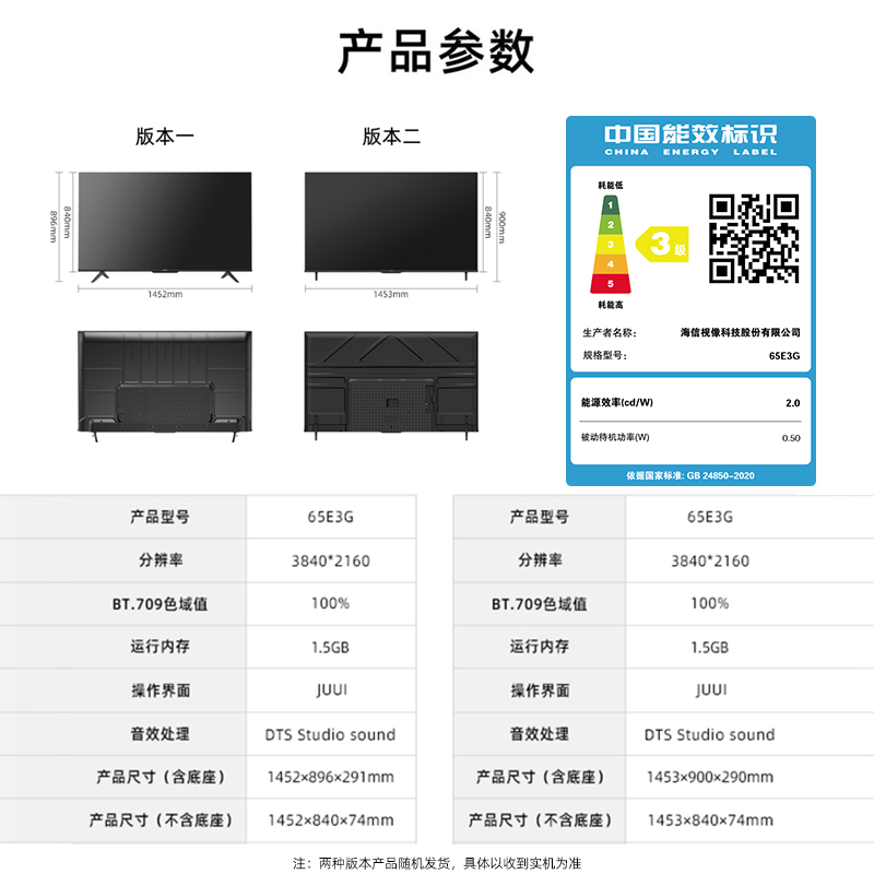 Hisense Hisense 65E3G 65-inch 4K full screen smart network flat panel LCD color TV 55